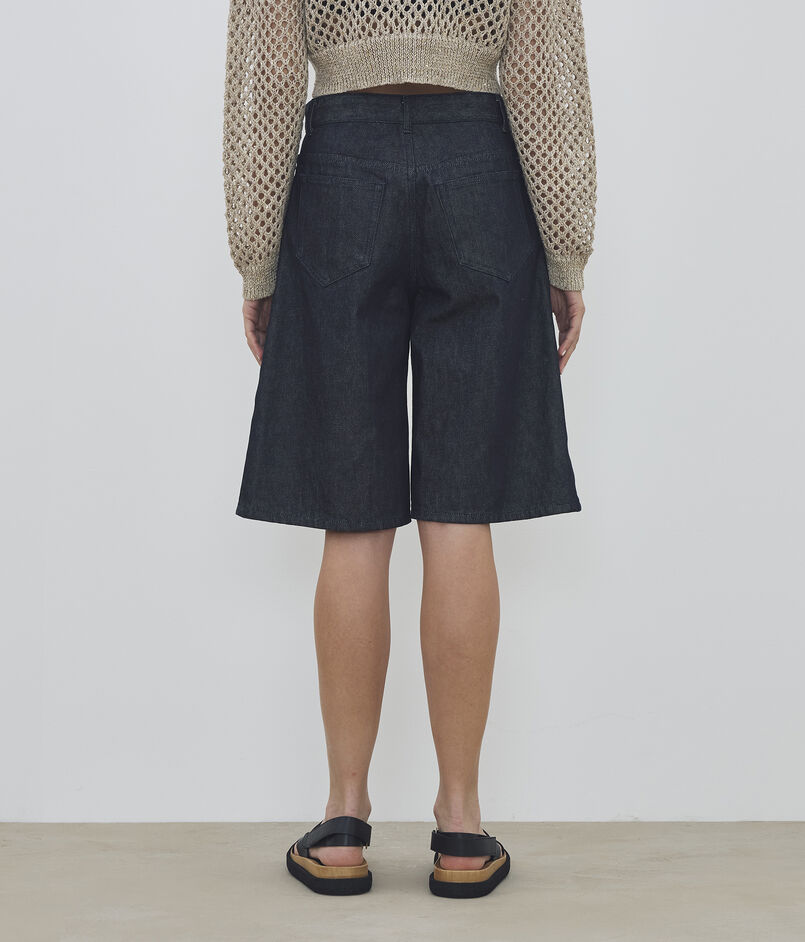 厳選されたカリフォルニア産とオーストラリア産のコットンを混紡し、高密度に織り上げた上質なデニム素材を使用したハーフパンツ。