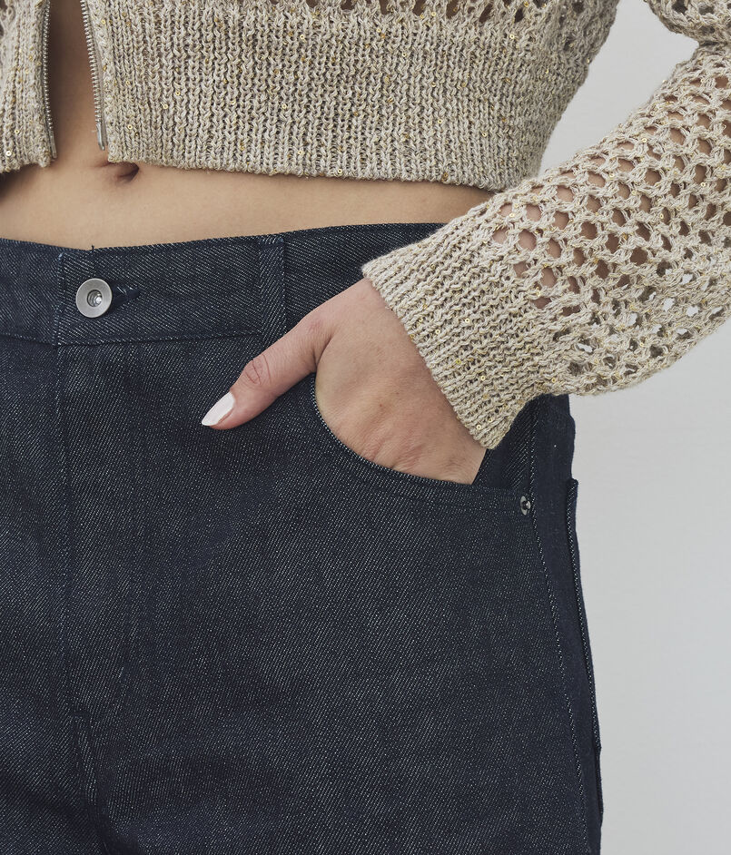 仕上げにシルケット加工を施すことでデニム特有のカジュアルさを抑え、品の良い滑らかな光沢を引き出しています。