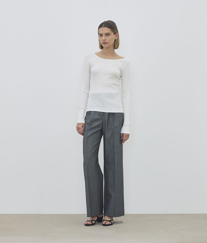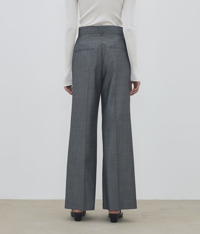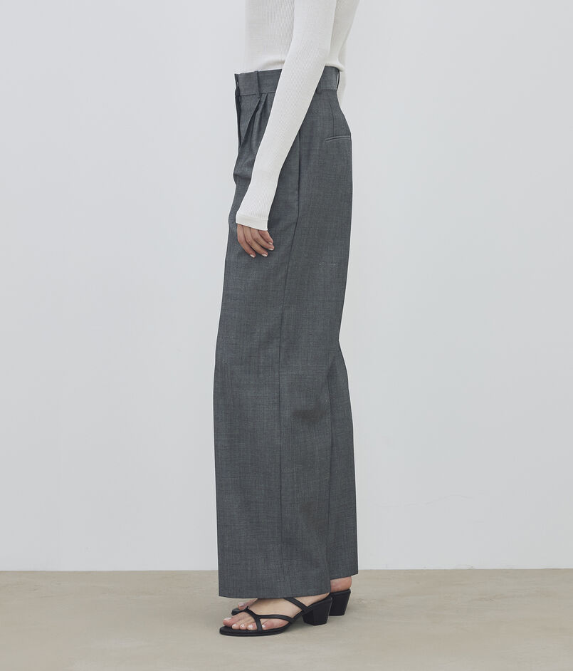 股下をすっきりと仕立てた、無駄のないクリーンなワイドシルエットの一着。