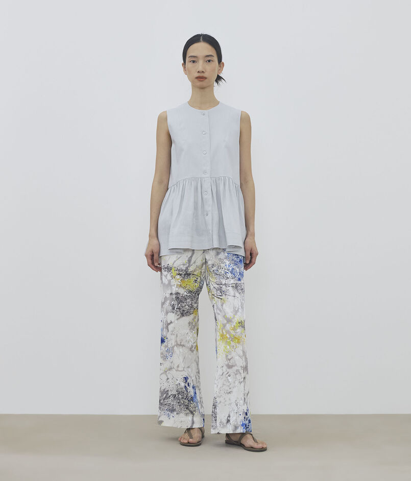 【WEB先行予約】 ダプルドシェードアブストラクトプリント エラスティックスリムパンツ