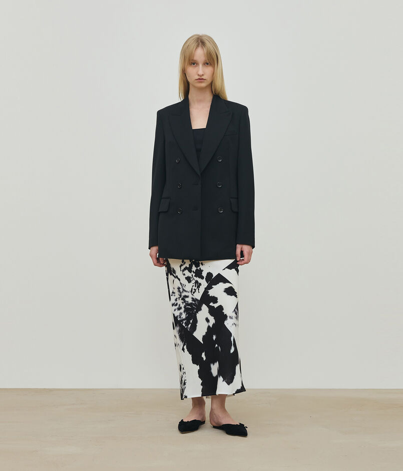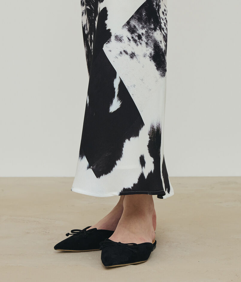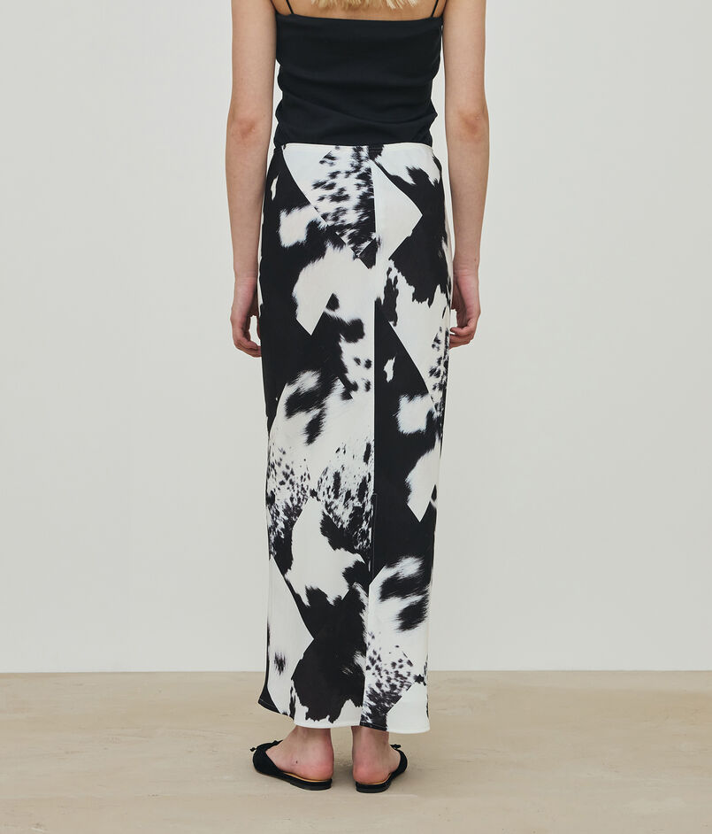 パズル状の柄がアニマルプリントの印象を和らげ、モノトーンカラーにすることで取り入れやすいアイテムに仕上がっています。