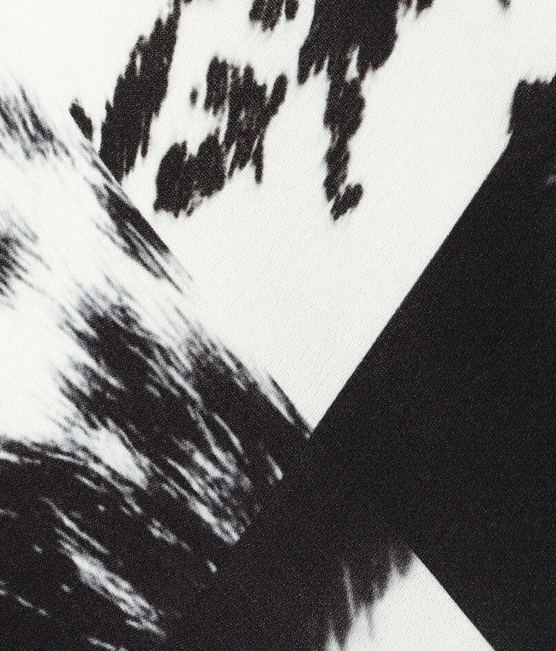 トリアセテートの上質な光沢感とポリエステルのドレープ感で構成された特殊糸で織り上げた、ほど良いストレッチ性と膨らみを併せ持った素材にアニマル柄を格子状にし、アーガイルのパターンとリンクするレイアウトに仕上げたプリントシリーズ。
