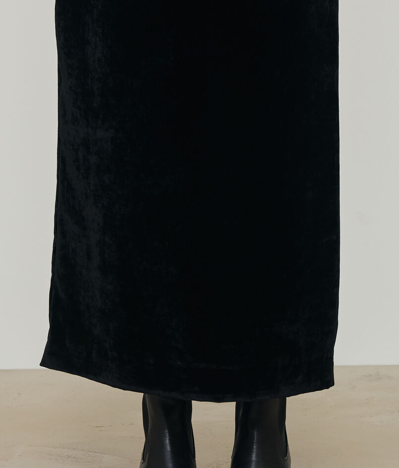 すとんと落ちるIラインとマキシ丈で大人の女性にぴったりの一着。