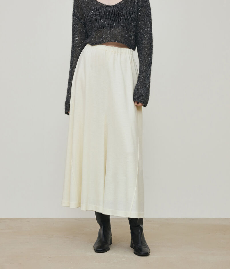 長めの丈感ながら軽やかな印象でフラットシューズやブーツとも相性抜群。