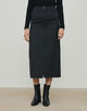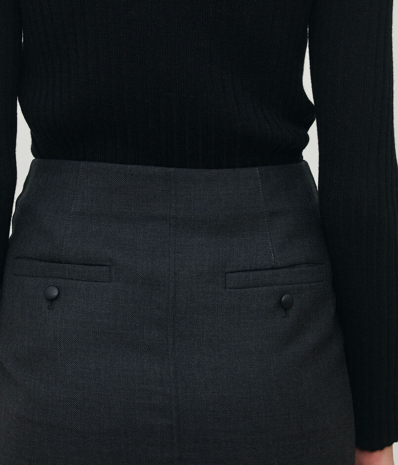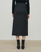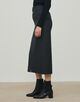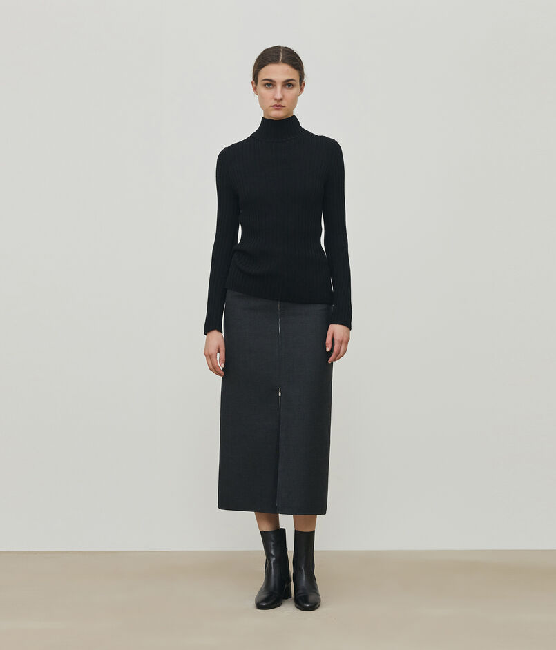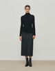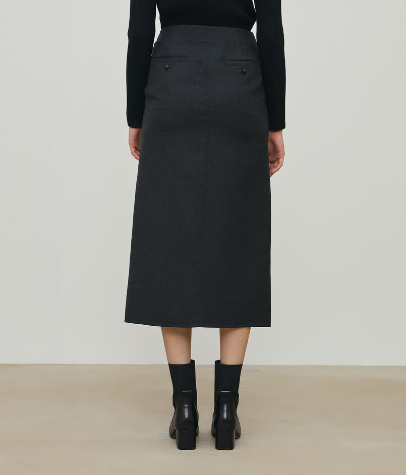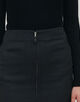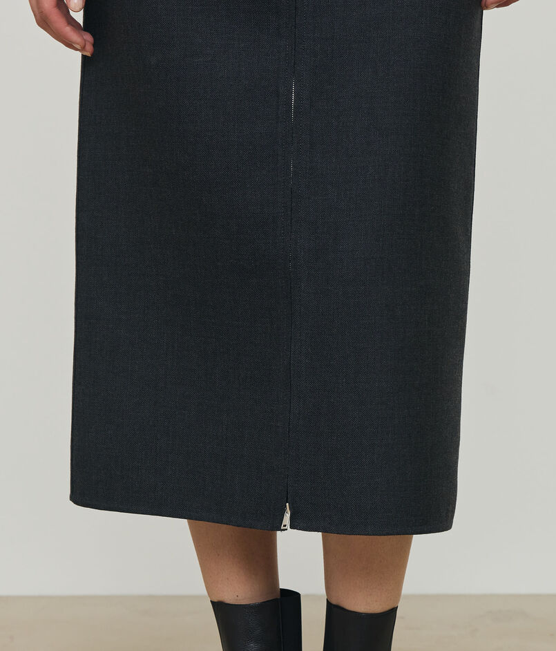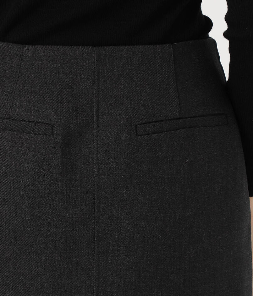 ジップアップのタイトスカートは裏地がなく軽い履き心地なので、スカートとしての着用はもちろん、ジップを深めに開けてパンツの上に重ね着するのもおすすめです。