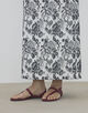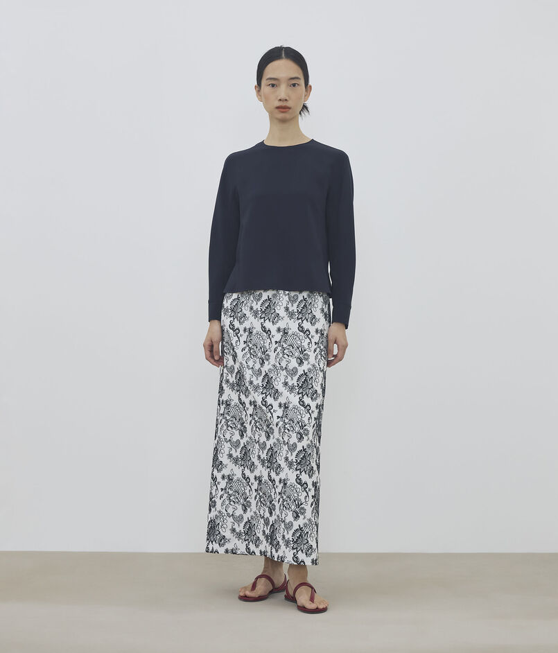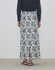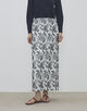 スカートはすっきりとしたストレートシルエットに足首まで届くマキシ丈でクリーンな印象の一着。