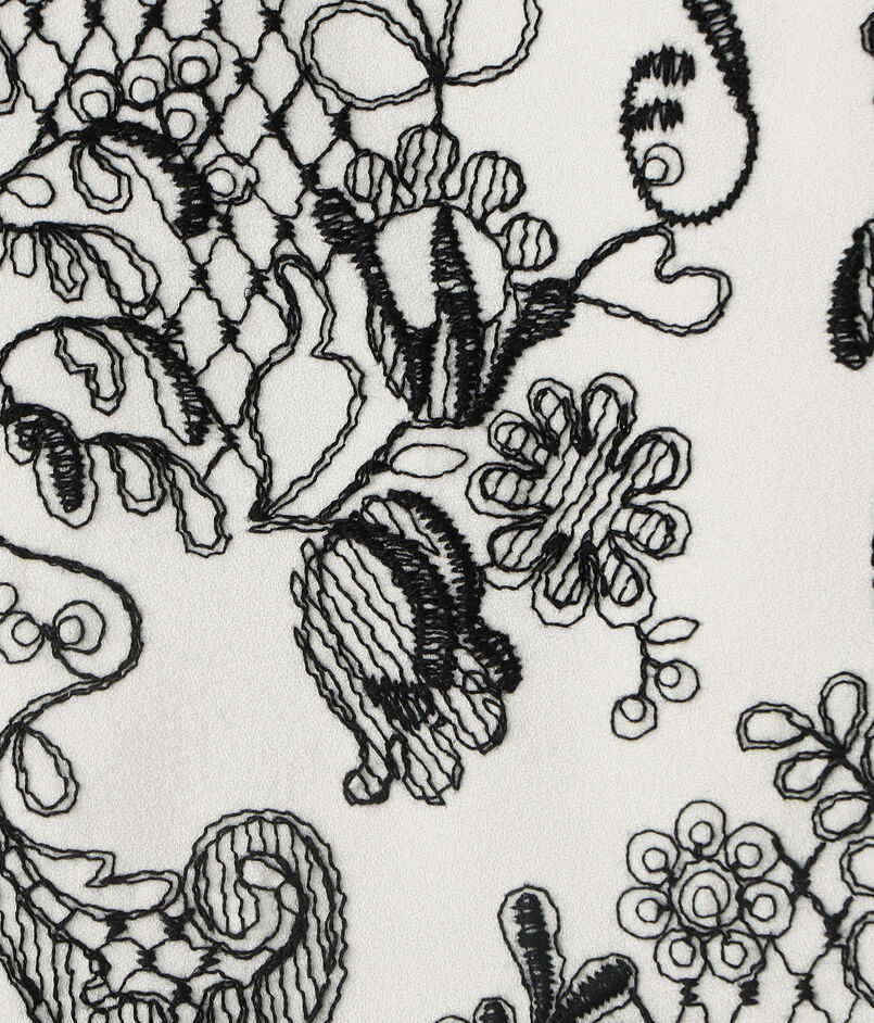 花びらのようなタツノオトシゴをレース柄に見立てた〈DES PRES〉オリジナルのデザインを福井にある工場に依頼して作り上げたエンブロイダリーシリーズ。
