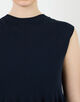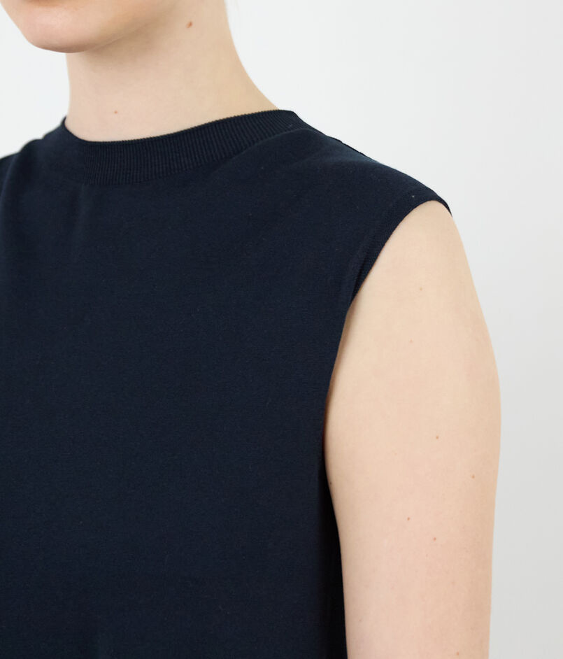 ショルダートップが隠れる袖丈に浅めのネックラインもデザインポイントです。