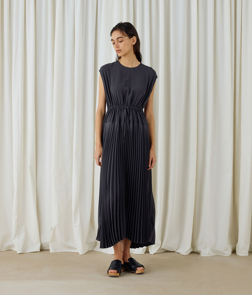 ジャージーライクジョーゼット プリーツコンビドレス