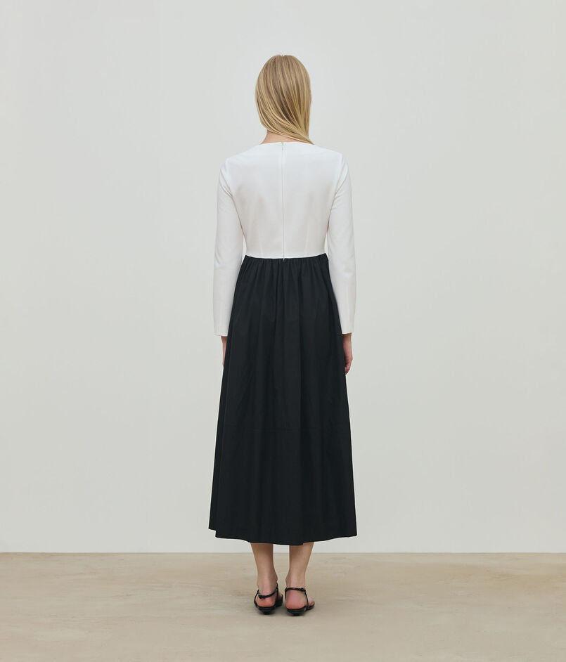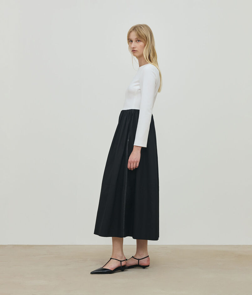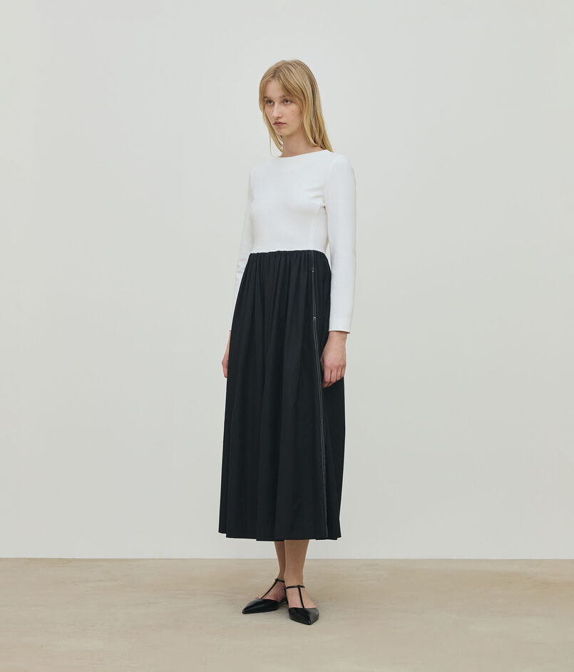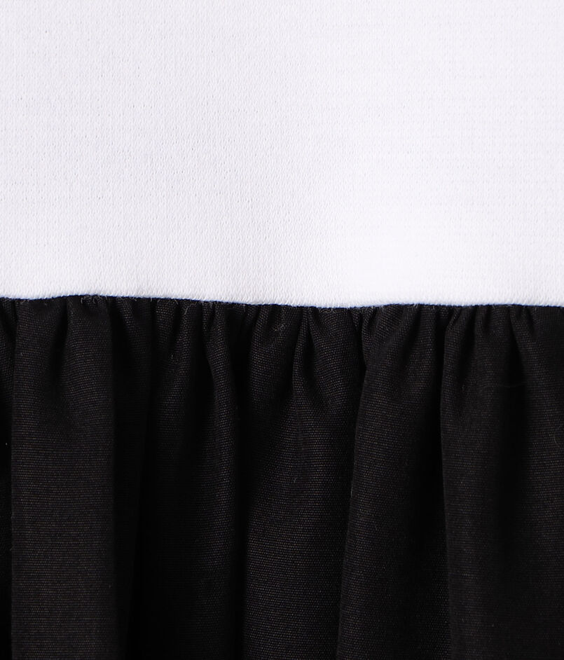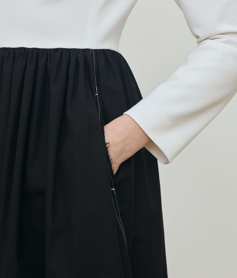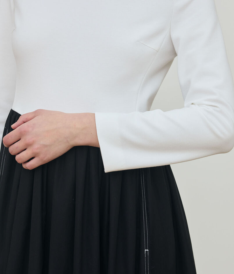 ジャージー部分はダーツを入れて布帛同様に仕立てることで立体感のあるフォルムを生み出しています。