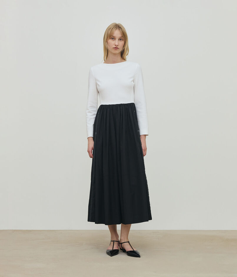コンパクトなトップスと分量感のあるふんわりとしたボトムのコントラストで女性らしい着こなしが決まるワンピース。