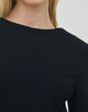 やや立ち上がっているように見えるボートネックで首まわりの表情にシャープさをプラス。