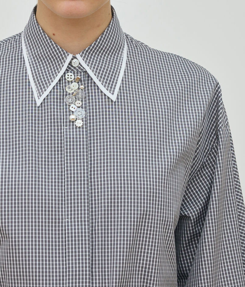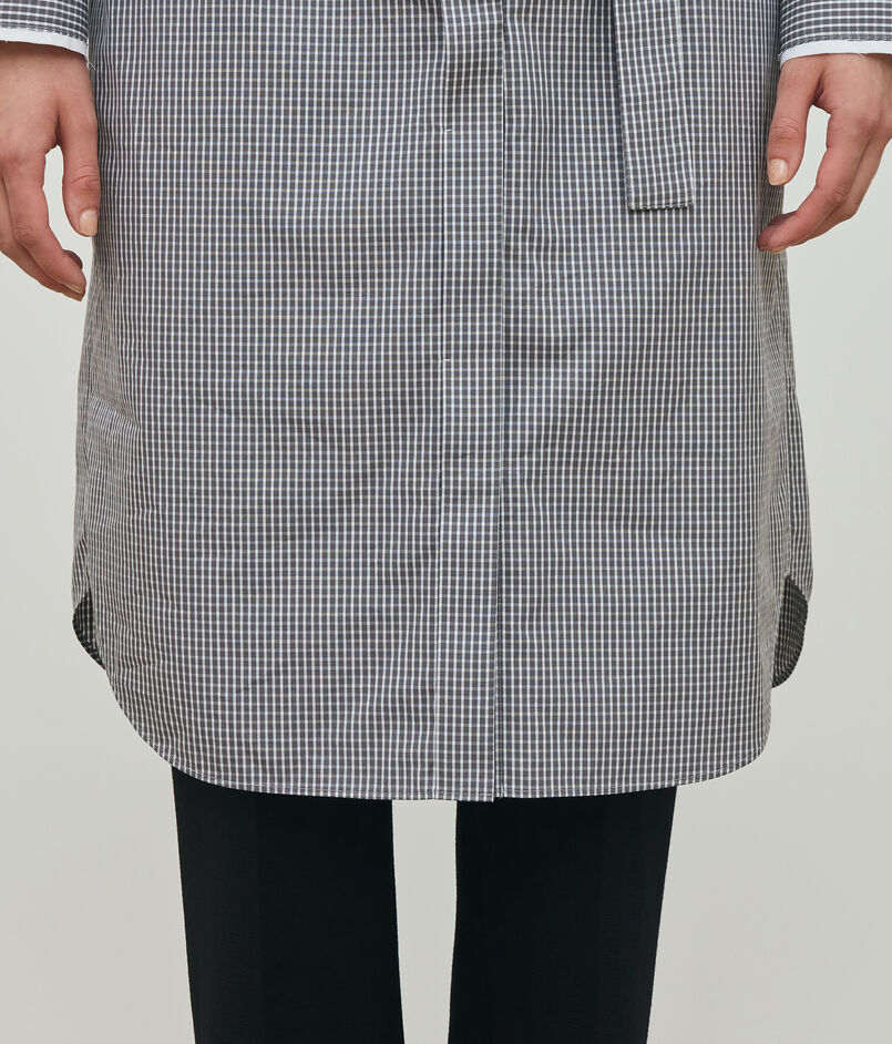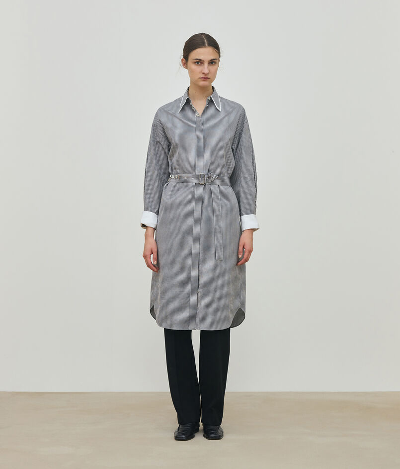 コンパクトな襟に裾に向かってすとんと落ちるストレートシルエットでクリーンな着こなしが決まります。