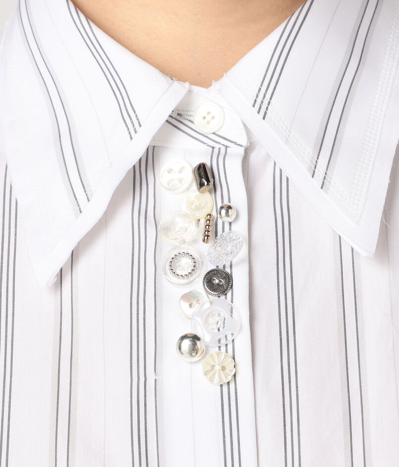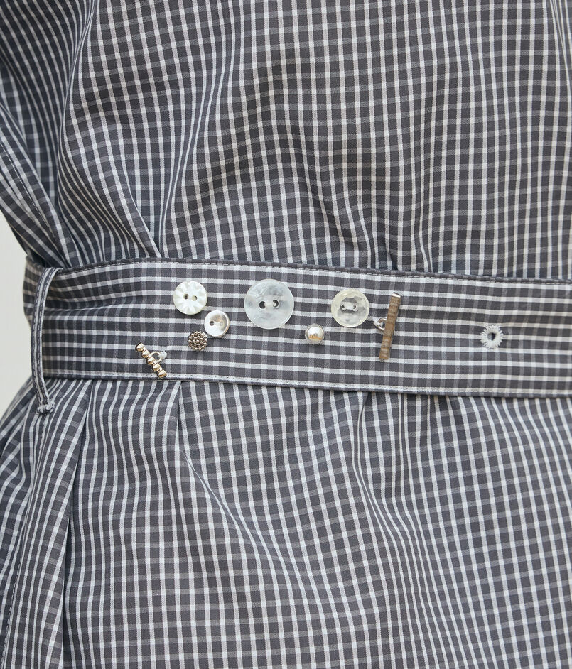 フロントトップやベルトにはビースのようにデザインボタンをあしらい華やかなアクセントに。