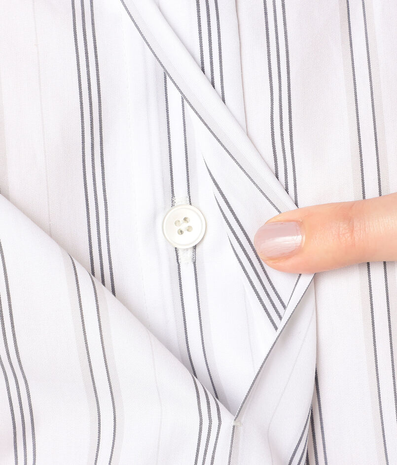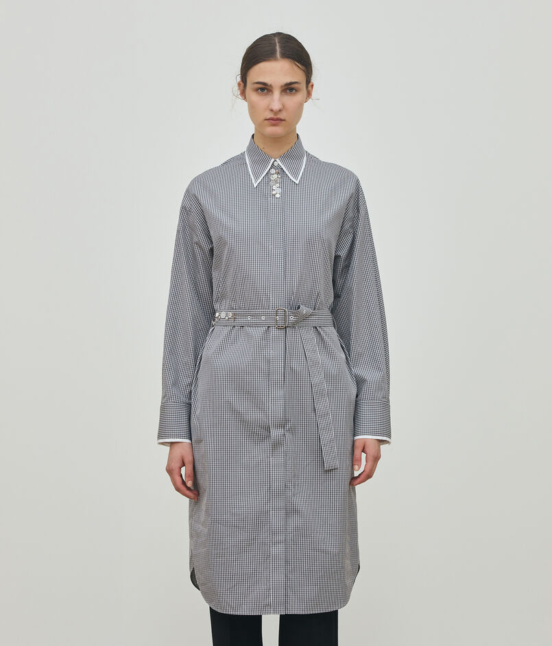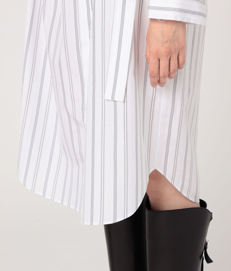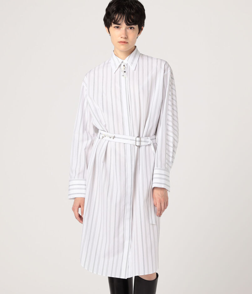 パンツとのレイヤードスタイルや付属のベルトできゅっと絞ったり、ボタンを開けてラフに羽織るなど、幅広いスタイリングを楽しめるアイテムです。