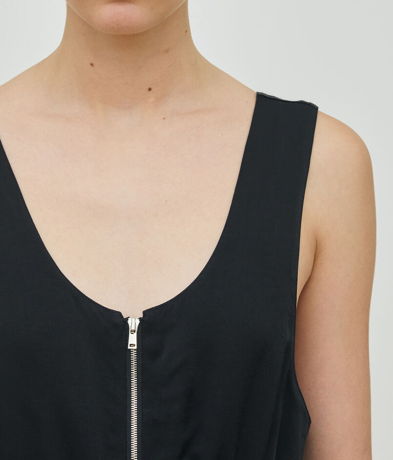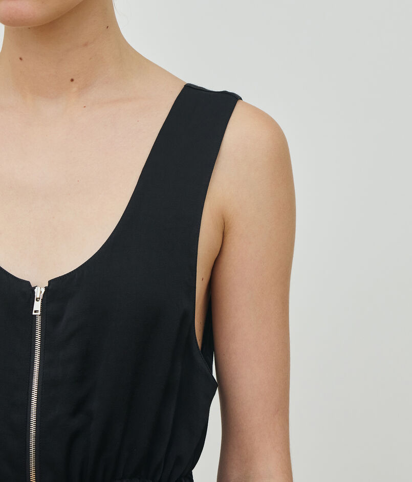 ノースリーブドレスはフロントジップでスポーティな要素のあるデザイン。