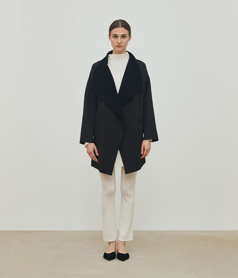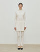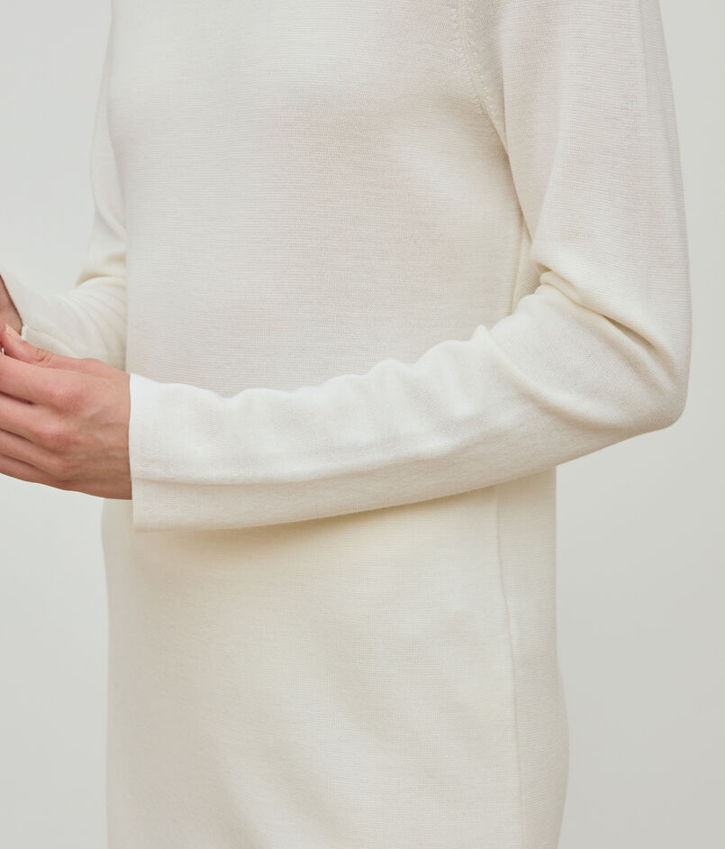 ミラノリブならではのフラットな表面でハリがあり、身体のラインを拾わずすとんと落ちるシルエットに仕上がっています。