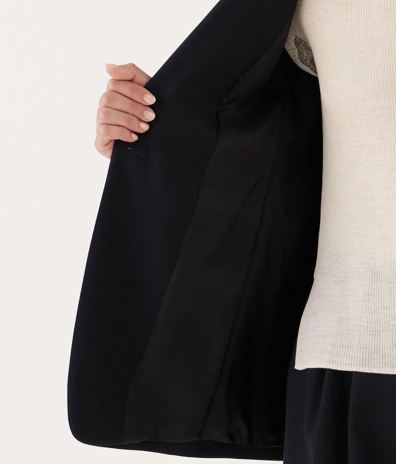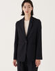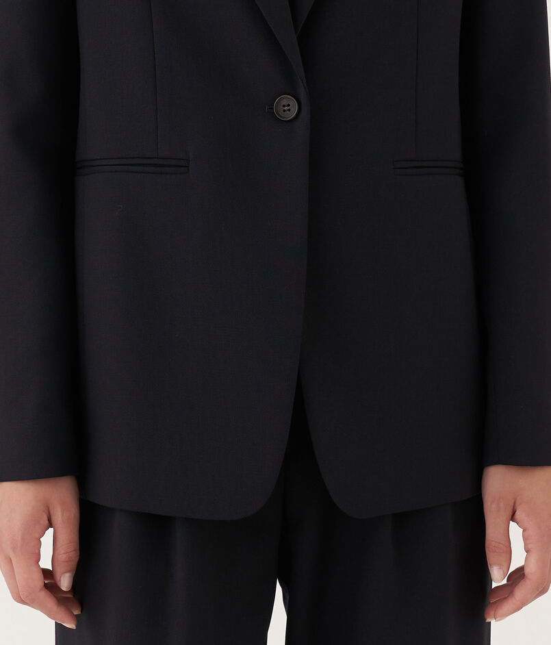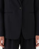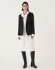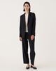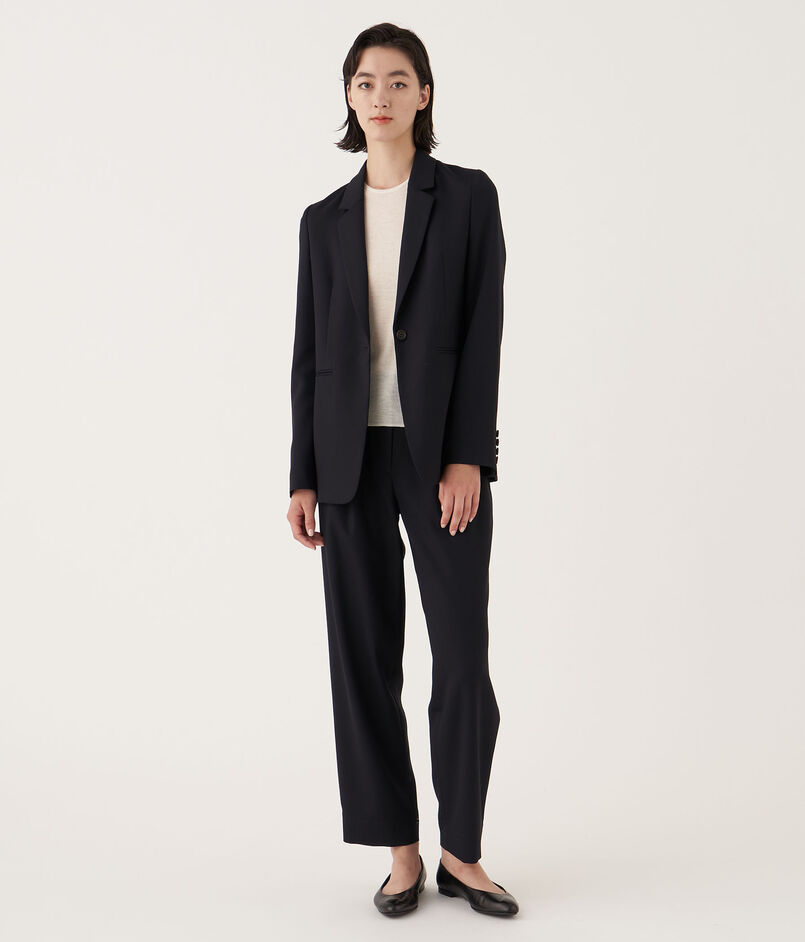 ジャケットはややゆとりを持たせたシルエットでリラックス感ありつつも、ウエストをシェイプさせることで女性らしいメリハリのあるバランスに。