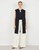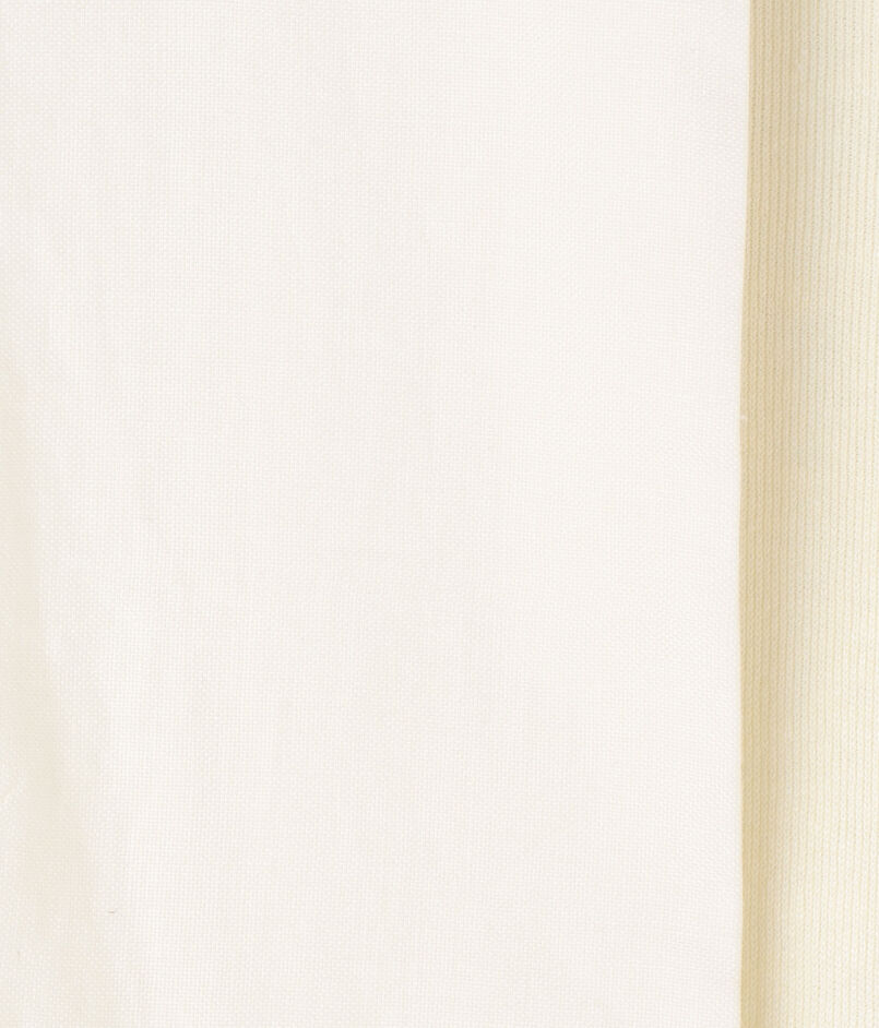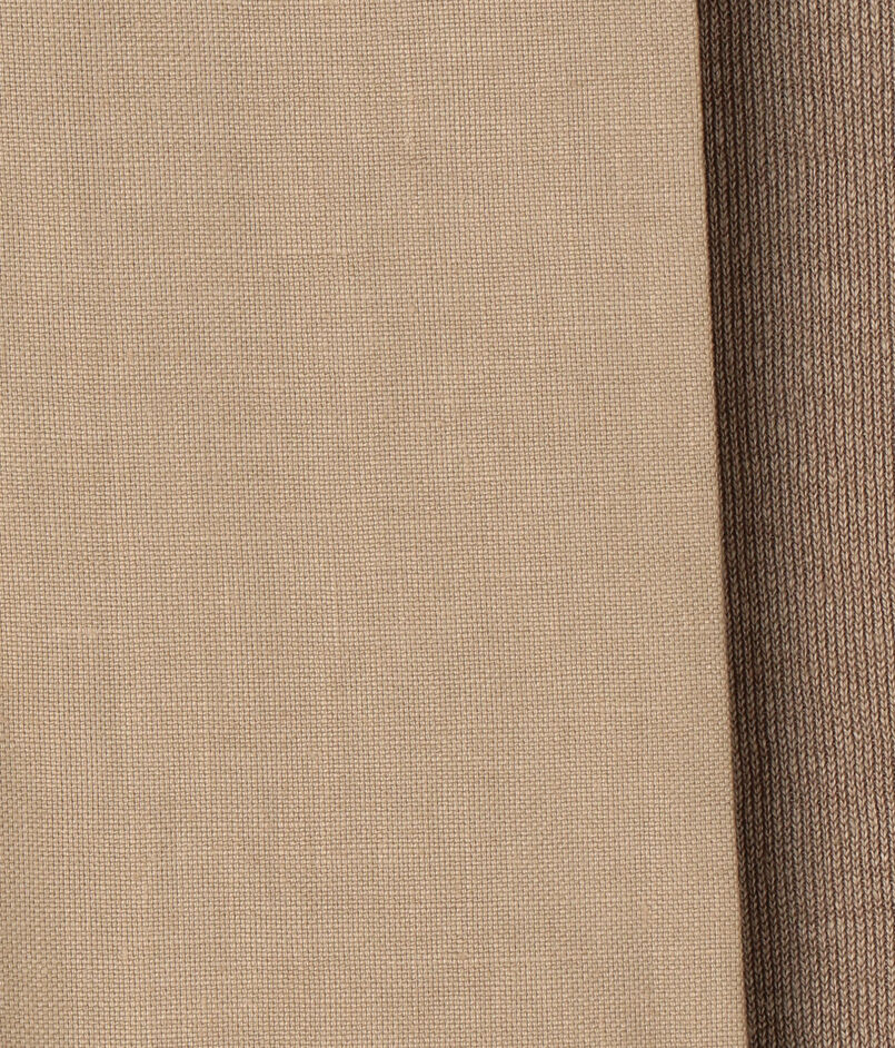 フロントに製織・染色を日本国内で行ったソフトで肌触りの良い布帛素材を、バックにはスムース編みできれいめな表情に仕上げたニット素材をコンビ使いしています。