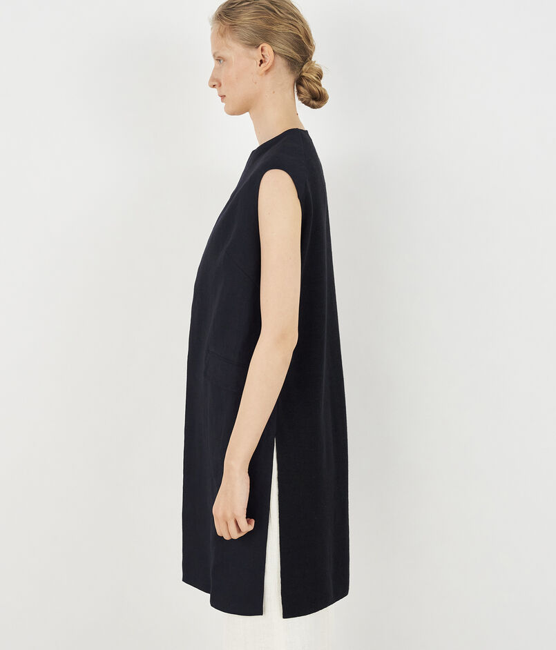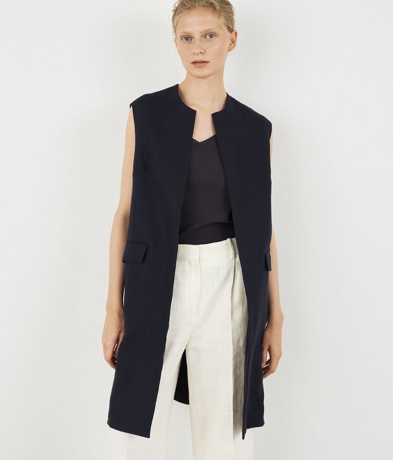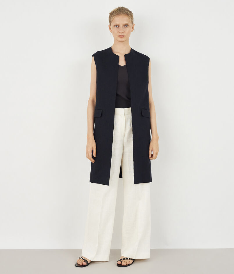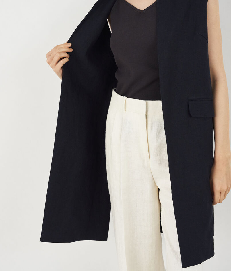 フランス産の上質なリネン素材を使用したロングジレ。