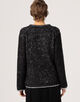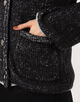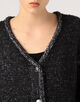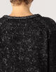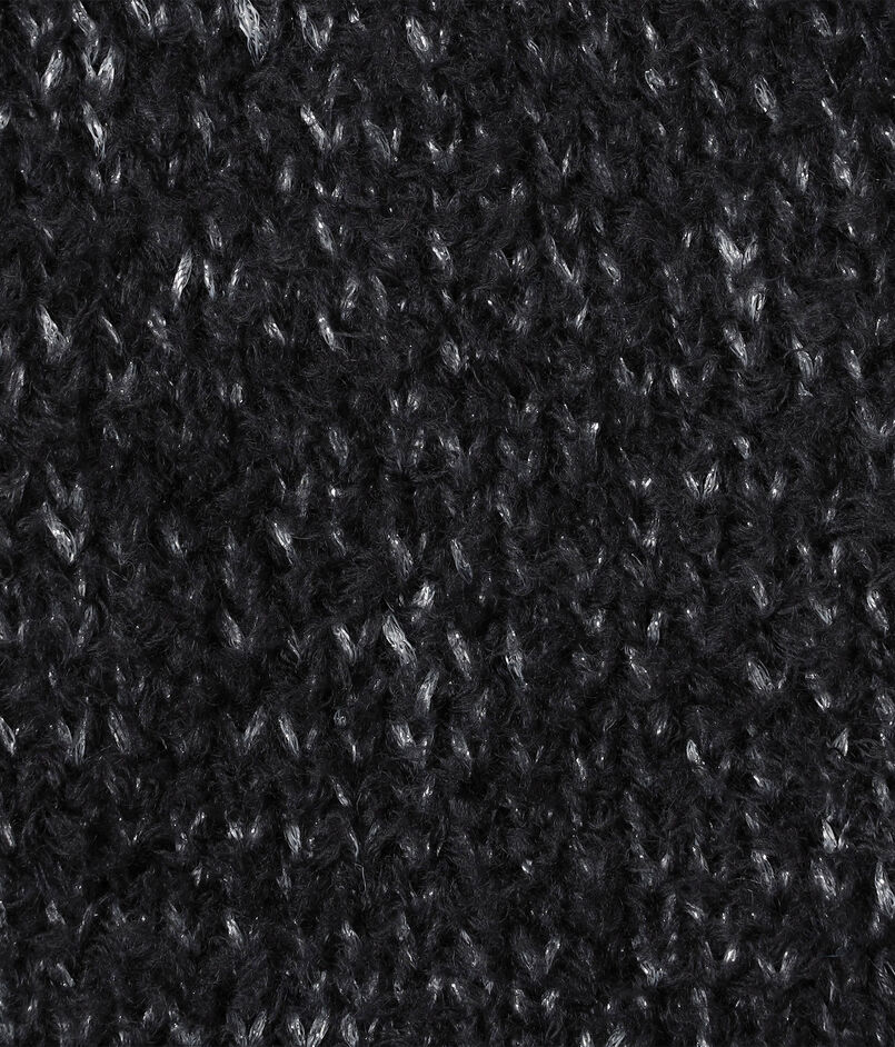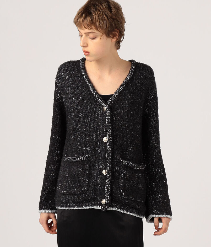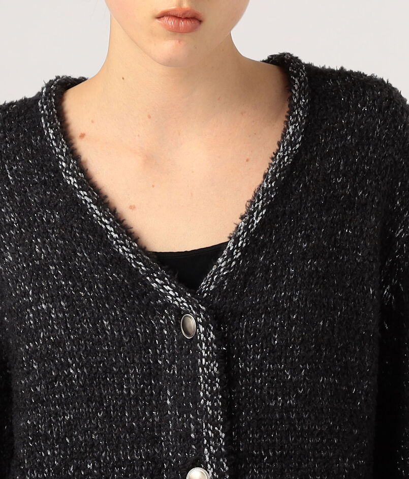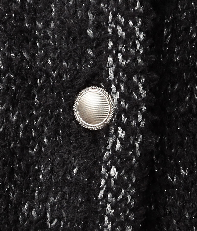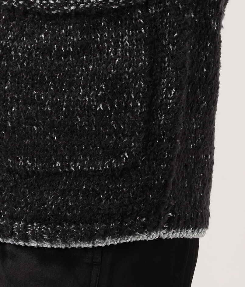 リリヤーン状のラメがウールファーの毛足の間からランダムに見える、ユニークな素材感が魅力的なニットシリーズ。