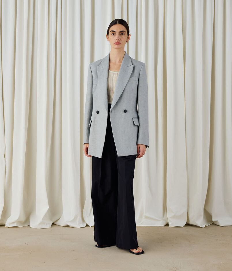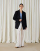 ジャケットはウエストシェイプのデザインでブランドらしいマニッシュかつクールなシルエットに仕上げた一着。