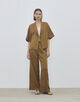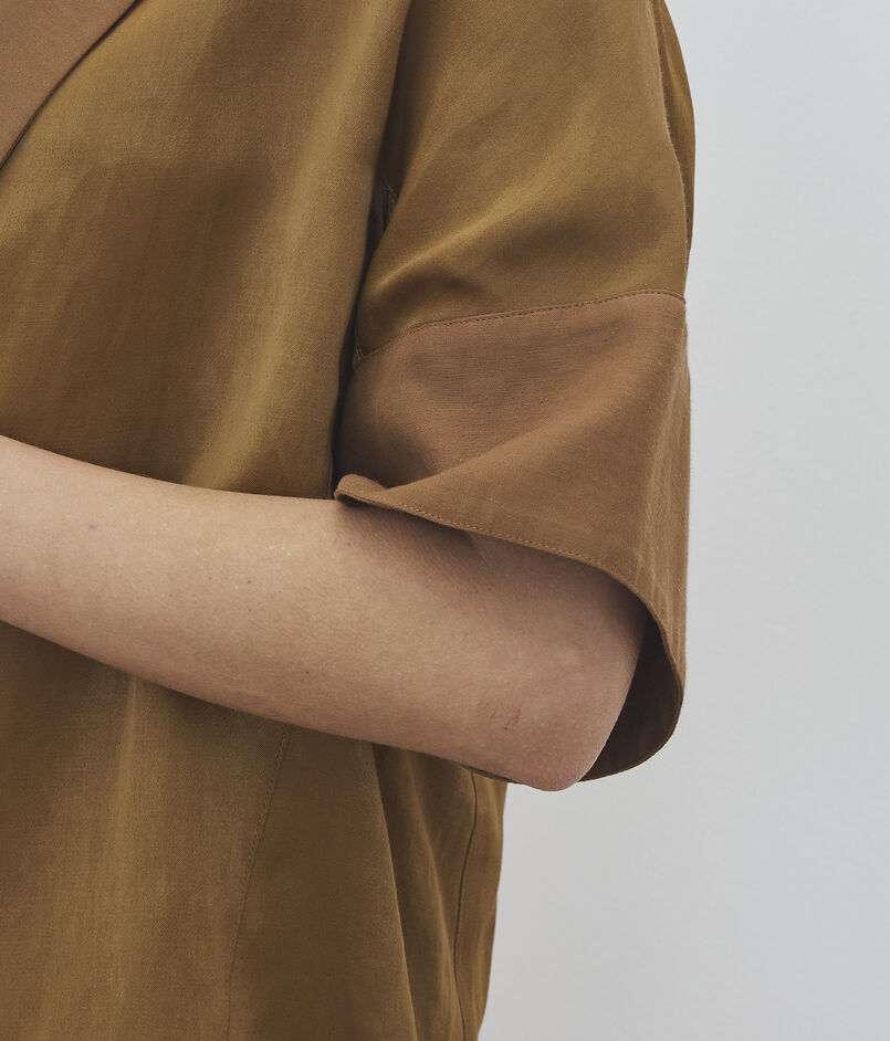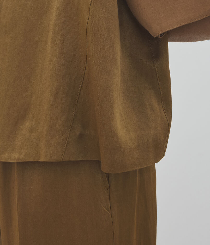 タテ糸に光沢を抑えたレーヨン糸を、ヨコ糸にリネンとラミーを混紡した糸を使用し織り上げた〈DES PRES〉定番のソフトサテンシリーズ。