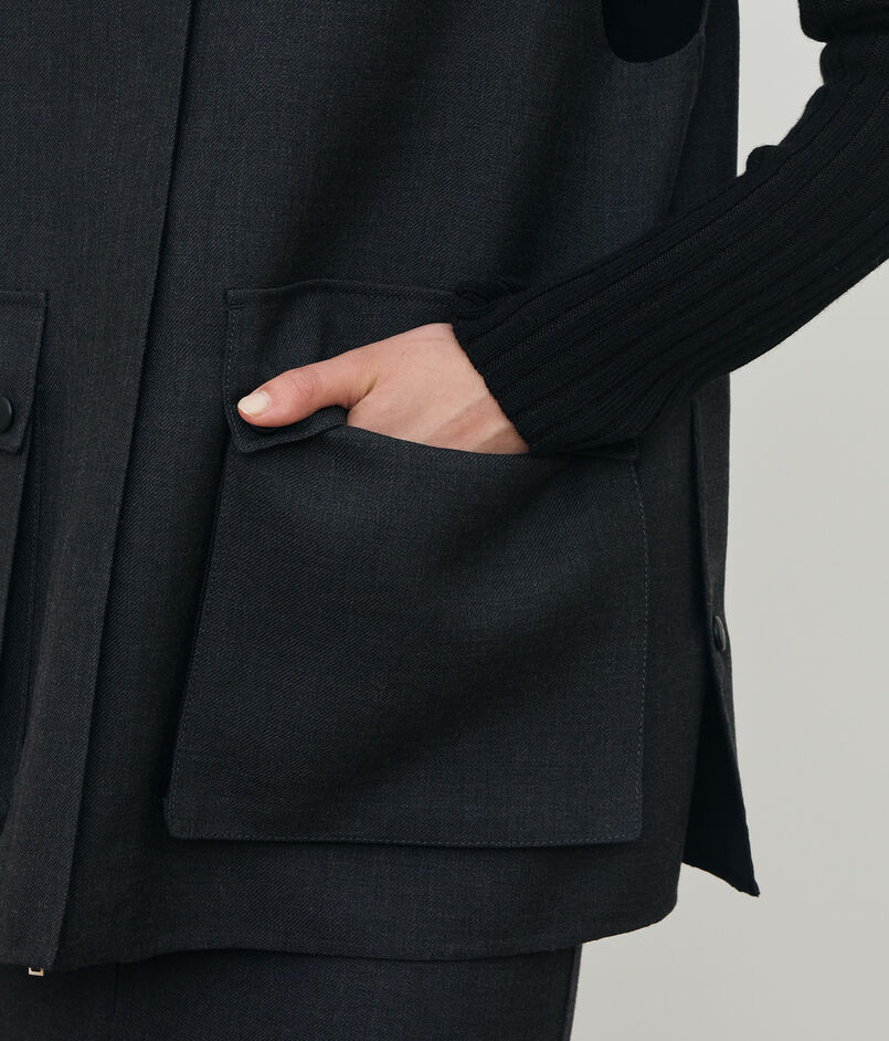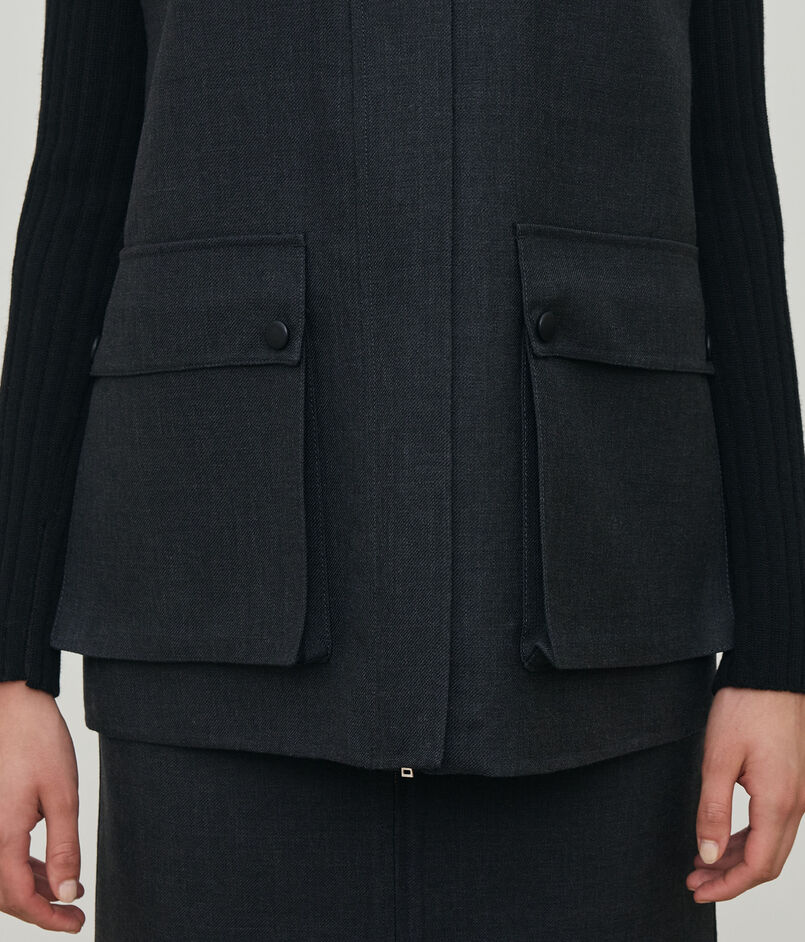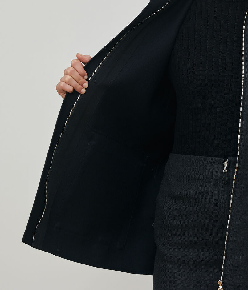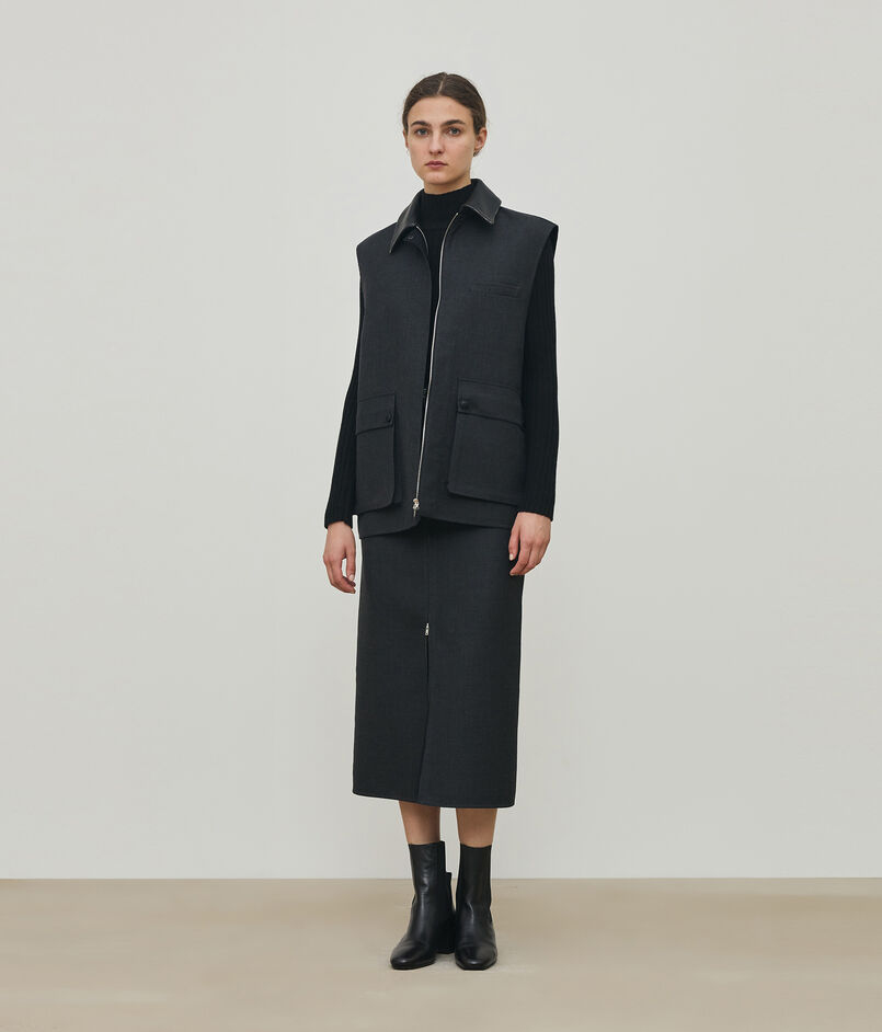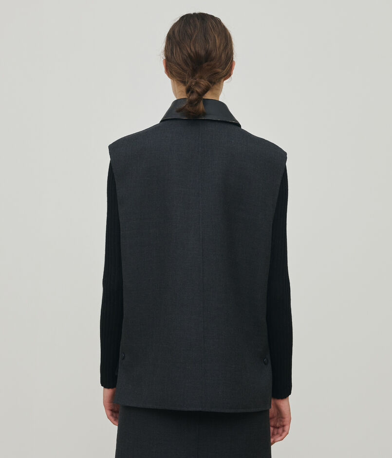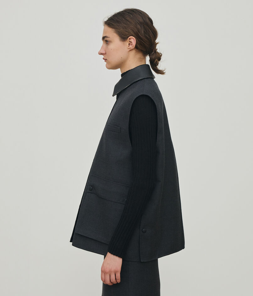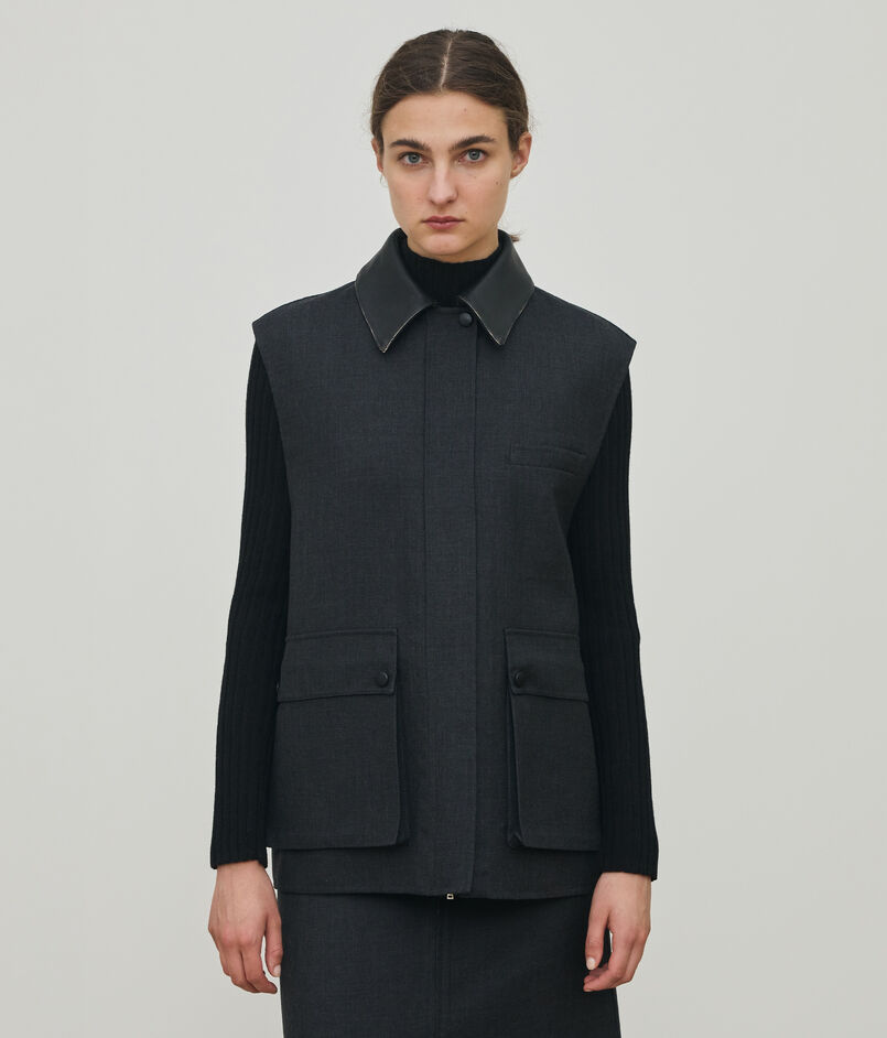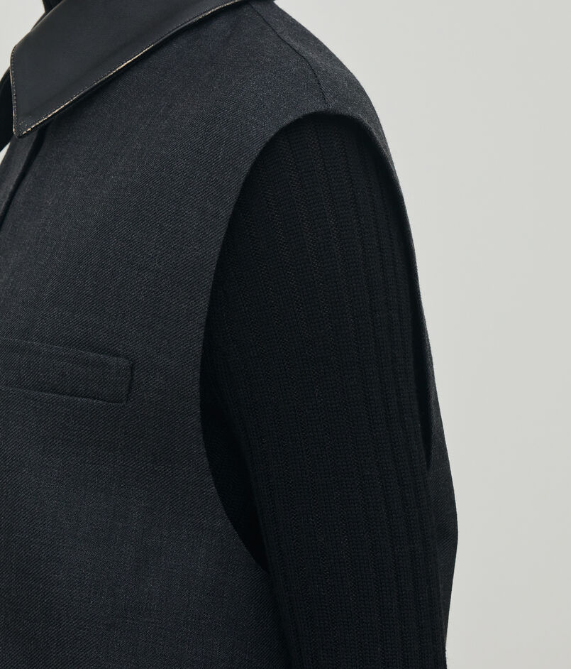 マニッシュさのあるウールダブルフェイス生地にカジュアルなディテールを落とし込んで仕上げたジレブルゾン。