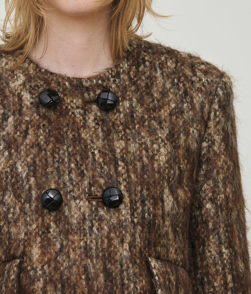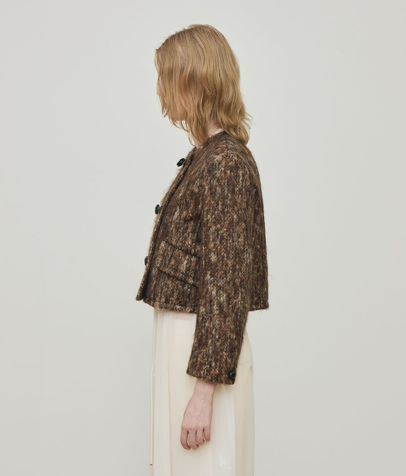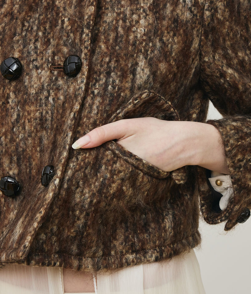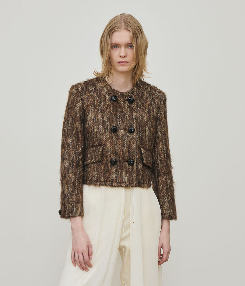 ループヤーンツイード ダブルブレスレッド ノーカラージャケット