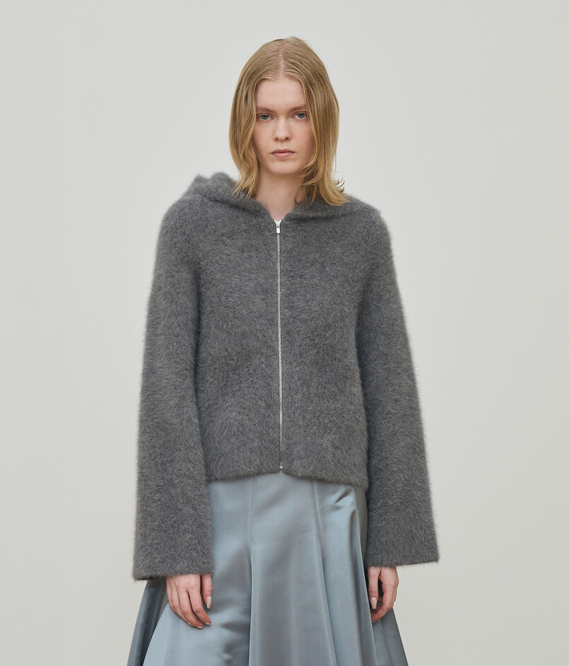 フード付きのブルゾンはカジュアルになり過ぎないようシンプルなデザインにこだわって仕立てることで、〈DES PRES〉らしくエレガントに着こなせる一着。