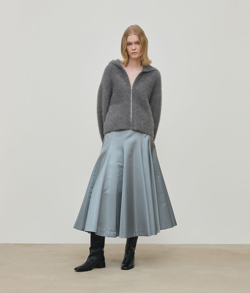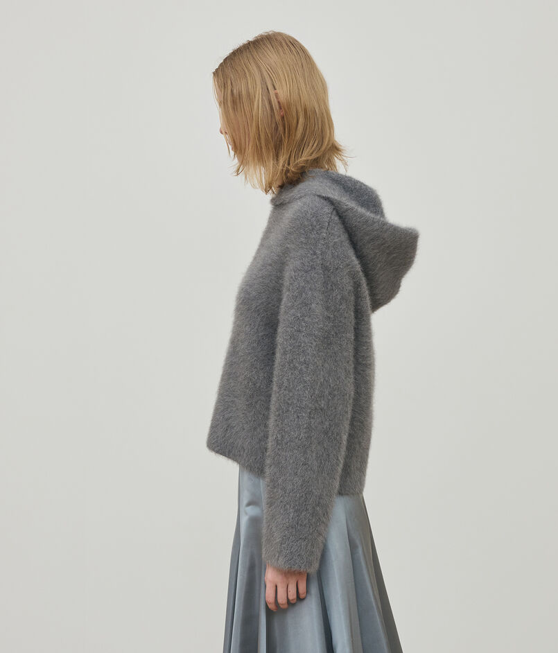 フード付きのブルゾンはカジュアルになり過ぎないようシンプルなデザインにこだわって仕立てることで、〈DES PRES〉らしくエレガントに着こなせる一着。