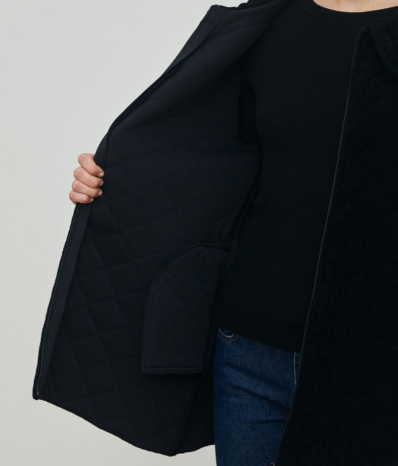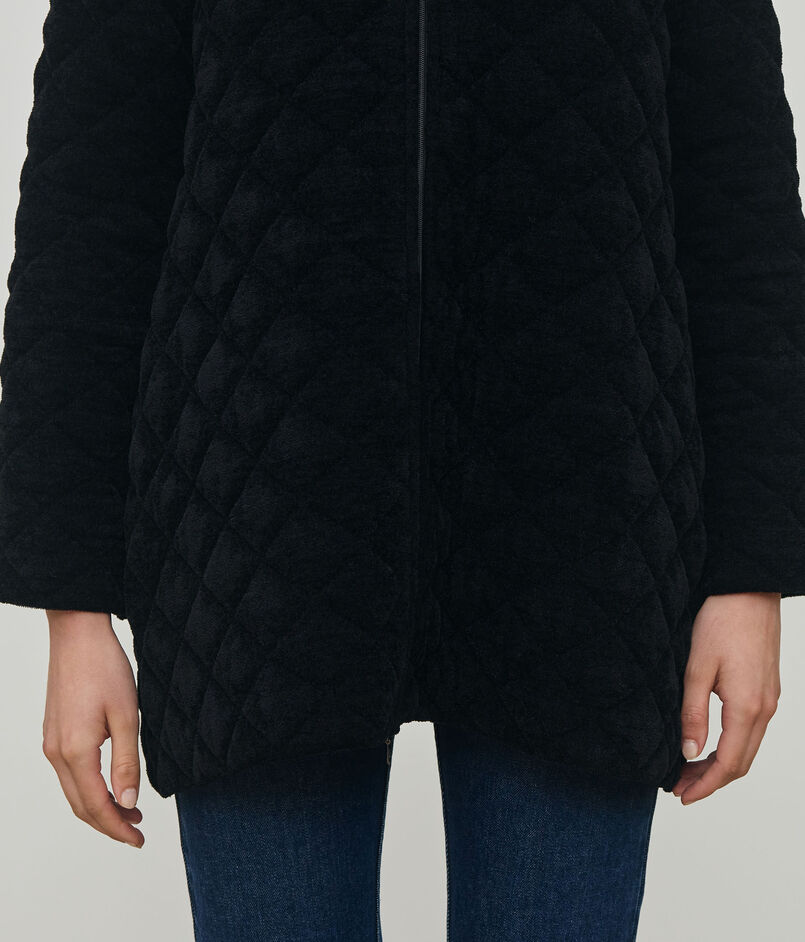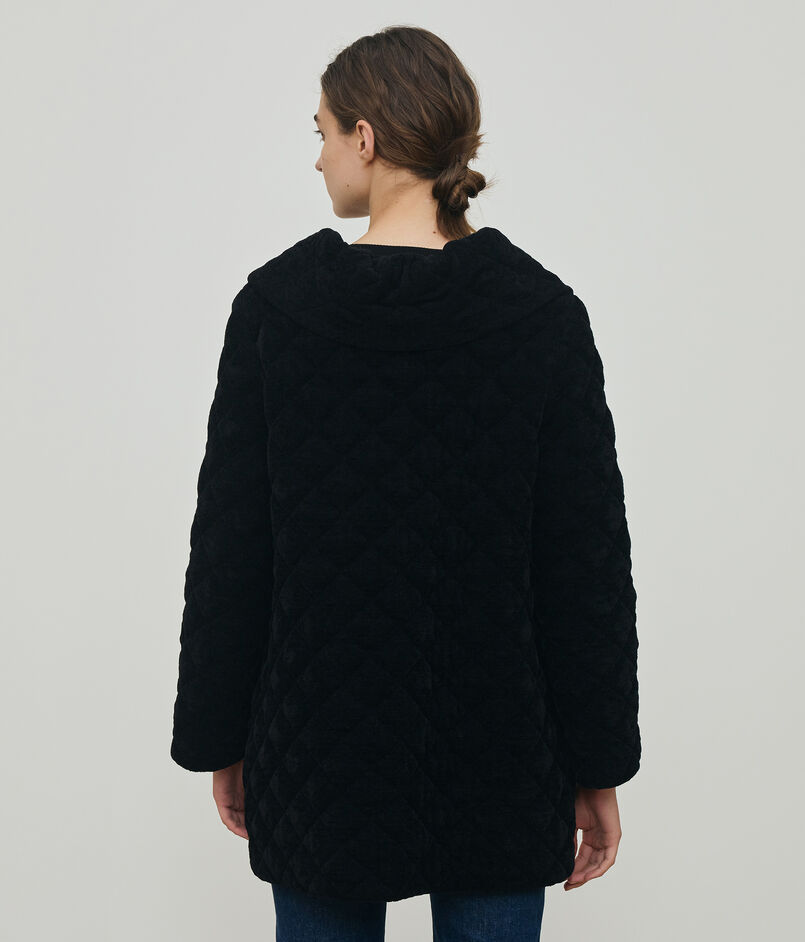 ベルベットのような風合いを表現できるモール糸で編み上げたニットコート。