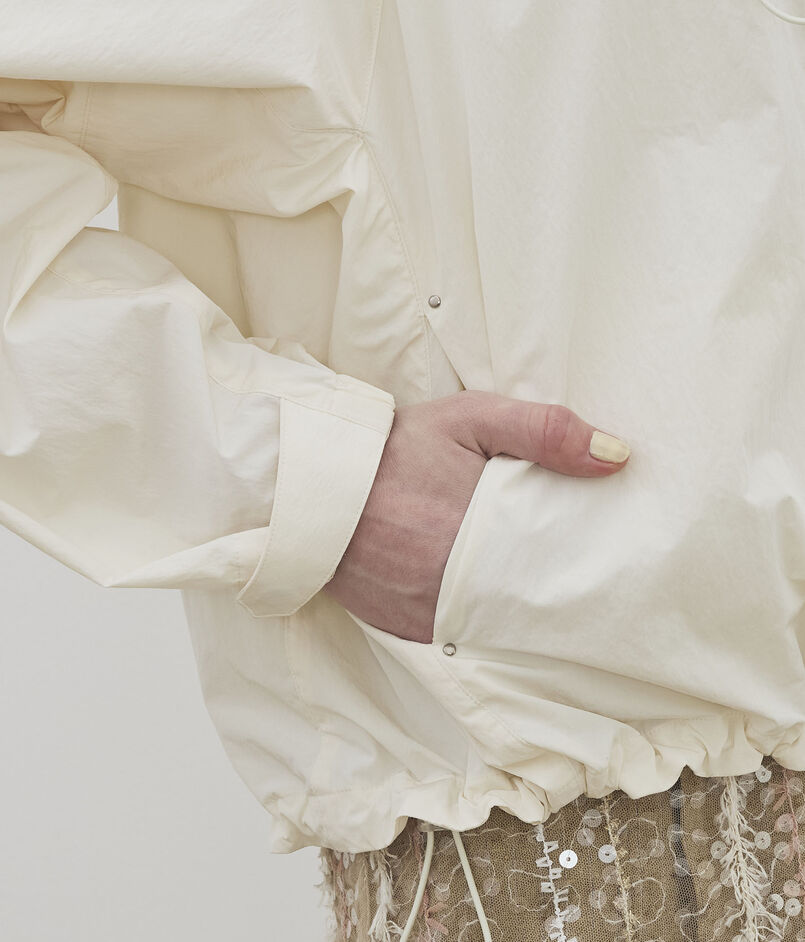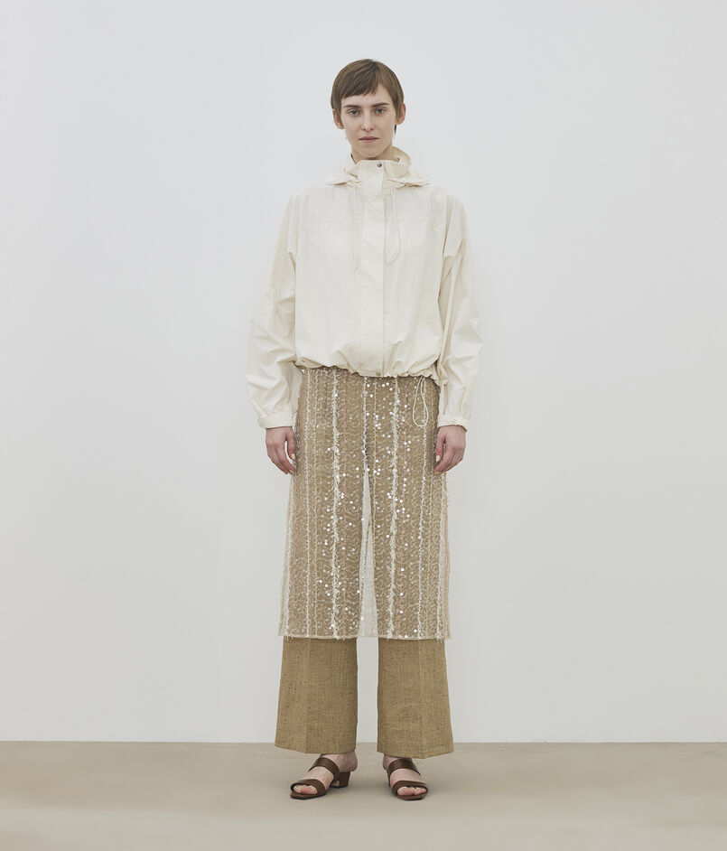 内側のコードで裾のフォルムを調整できるので、スタイリングバランスや身長に合わせて柔軟にアレンジしていただけます。