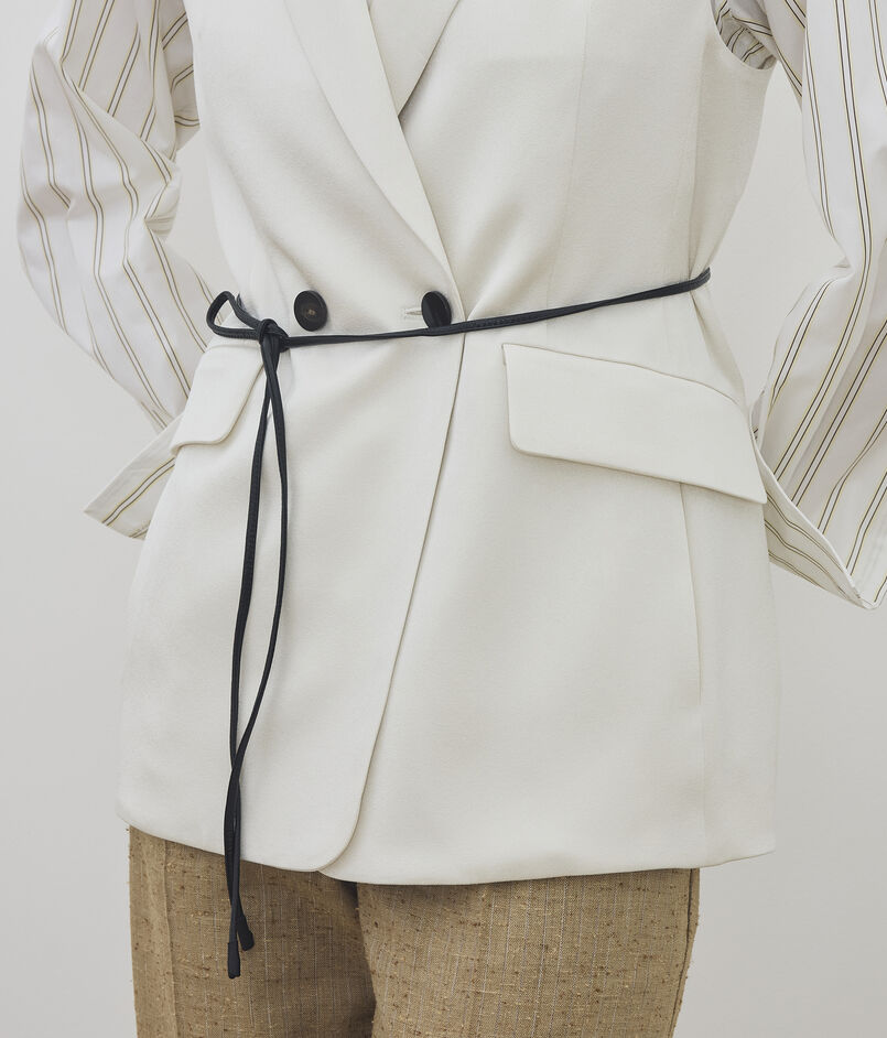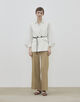 前を開けてさらりと羽織るのはもちろん、付属のレザーベルトでウエストマークしメリハリをつけて着こなすのもおすすめ。