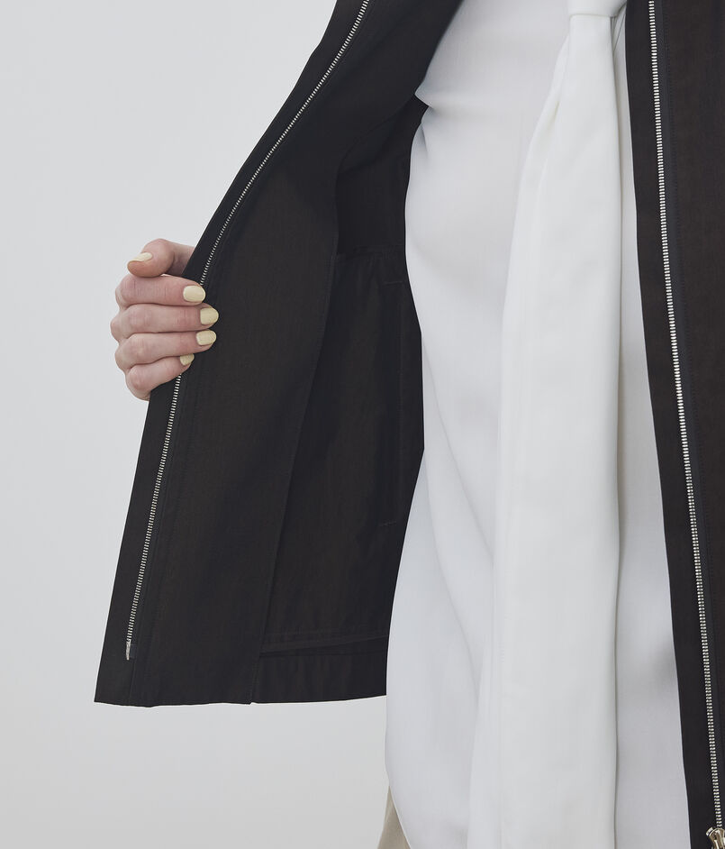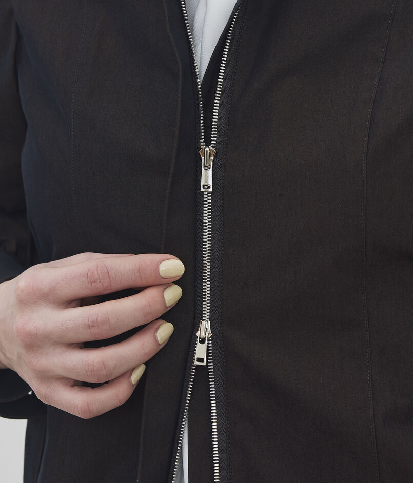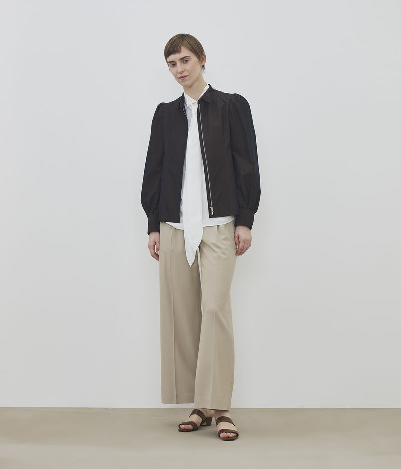 ジップアップブルゾンとしても、ブラウスとしても着用できる軽さなので、シーズン問わず着用できます。