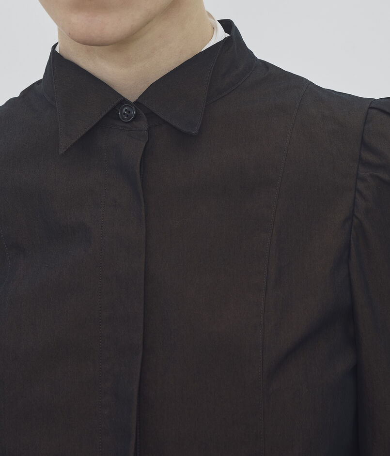 パフスリーブジャケットはブラウスディティールを取り入れ、シャープさの中にも程よく甘さがあるのデザインがポイント。