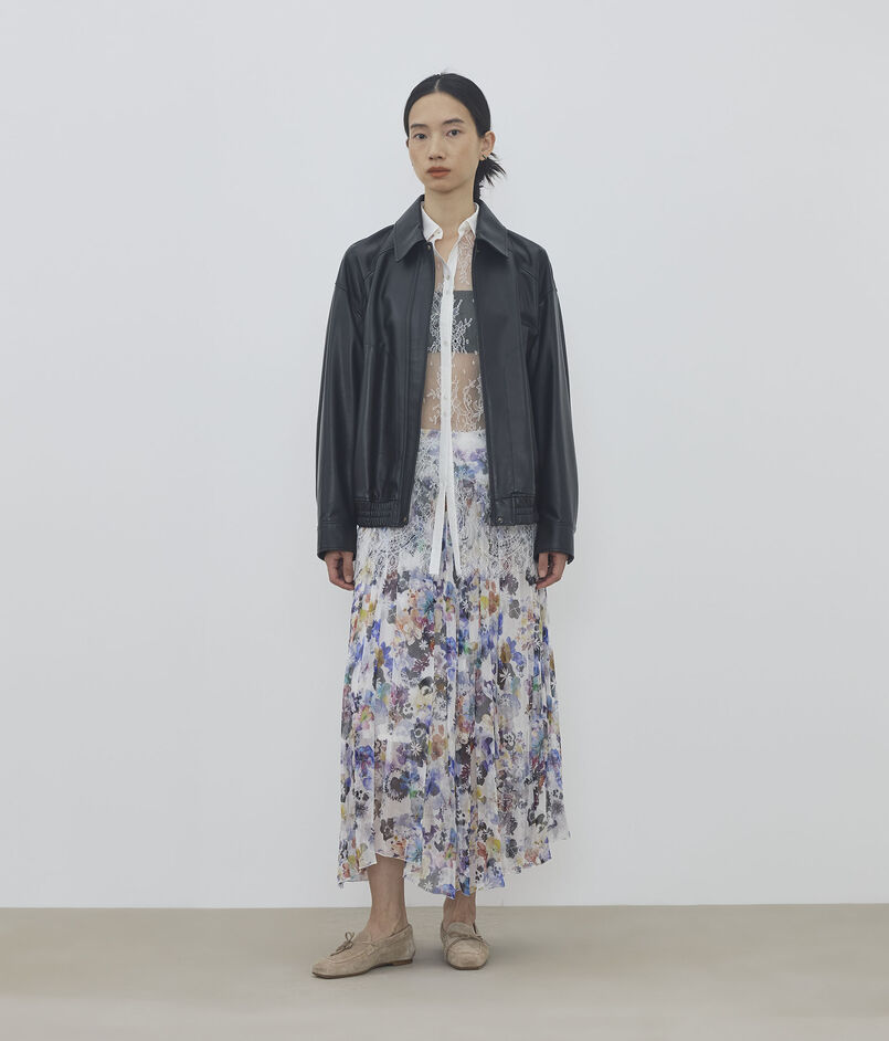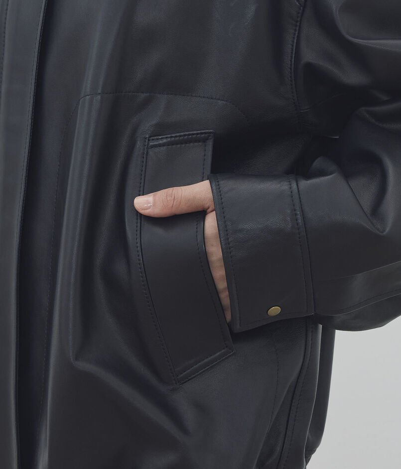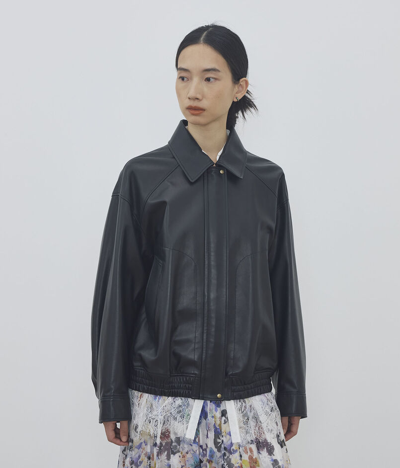 オーバーサイズのブルゾンはバイカー風のシルエットでシンプルな洗練された一枚。