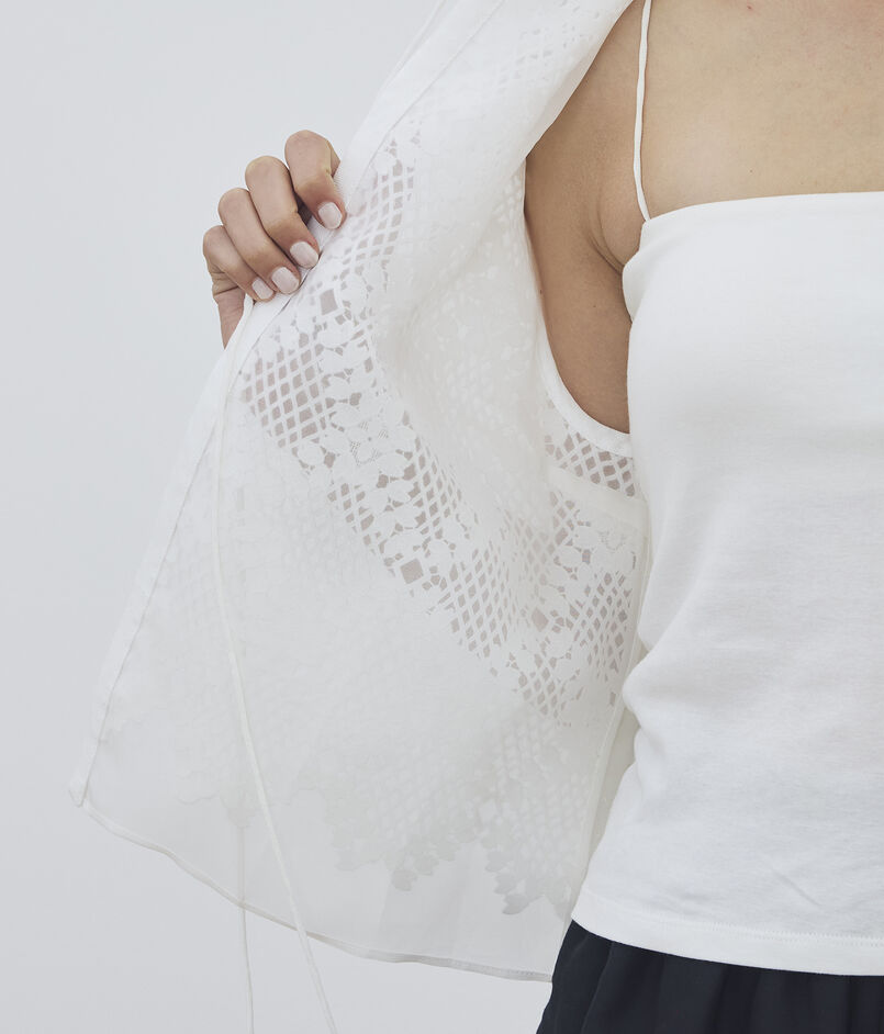 裏地には肌触りの良いシルクオーガンジーを重ねることでほど良い透け感に仕上げています。