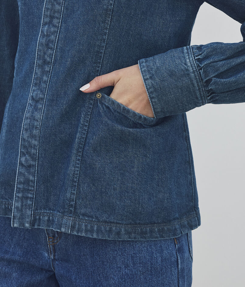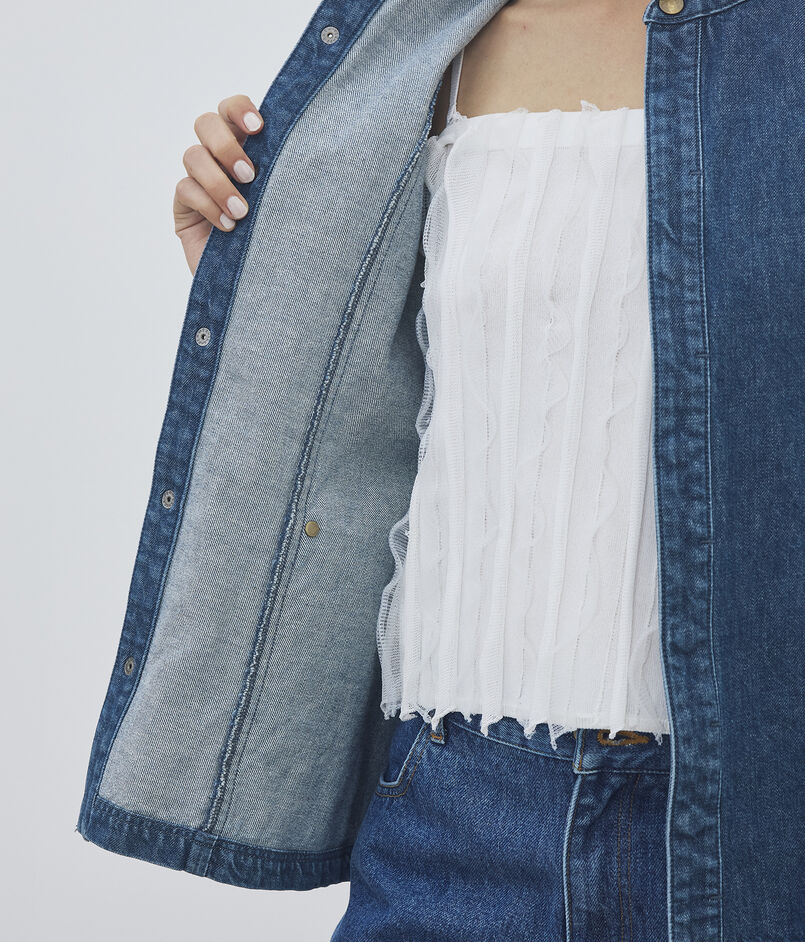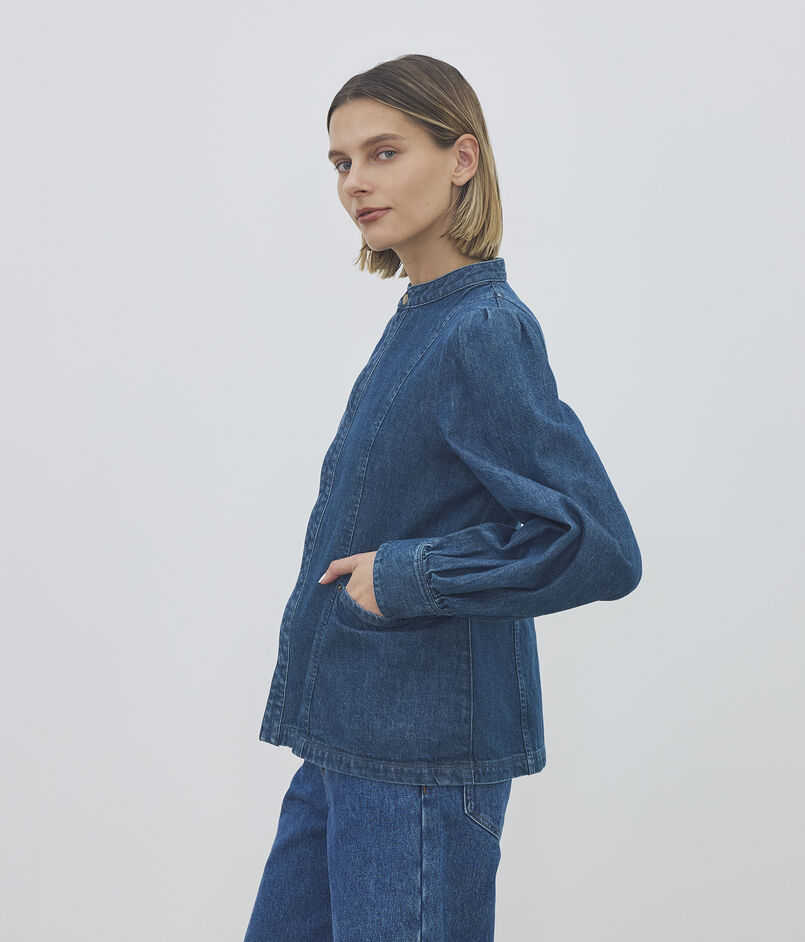 季節を問わずお召しいただけ、羽織りとしてだけでなく、ブラウス感覚でも着用できるアイテム。