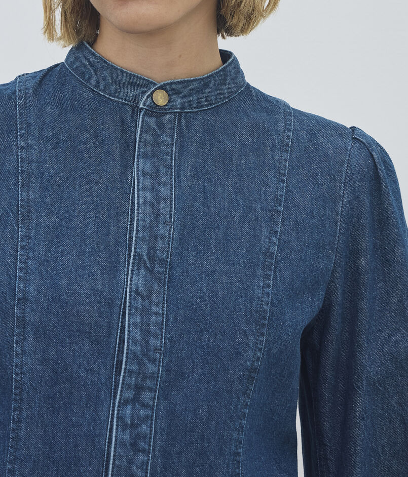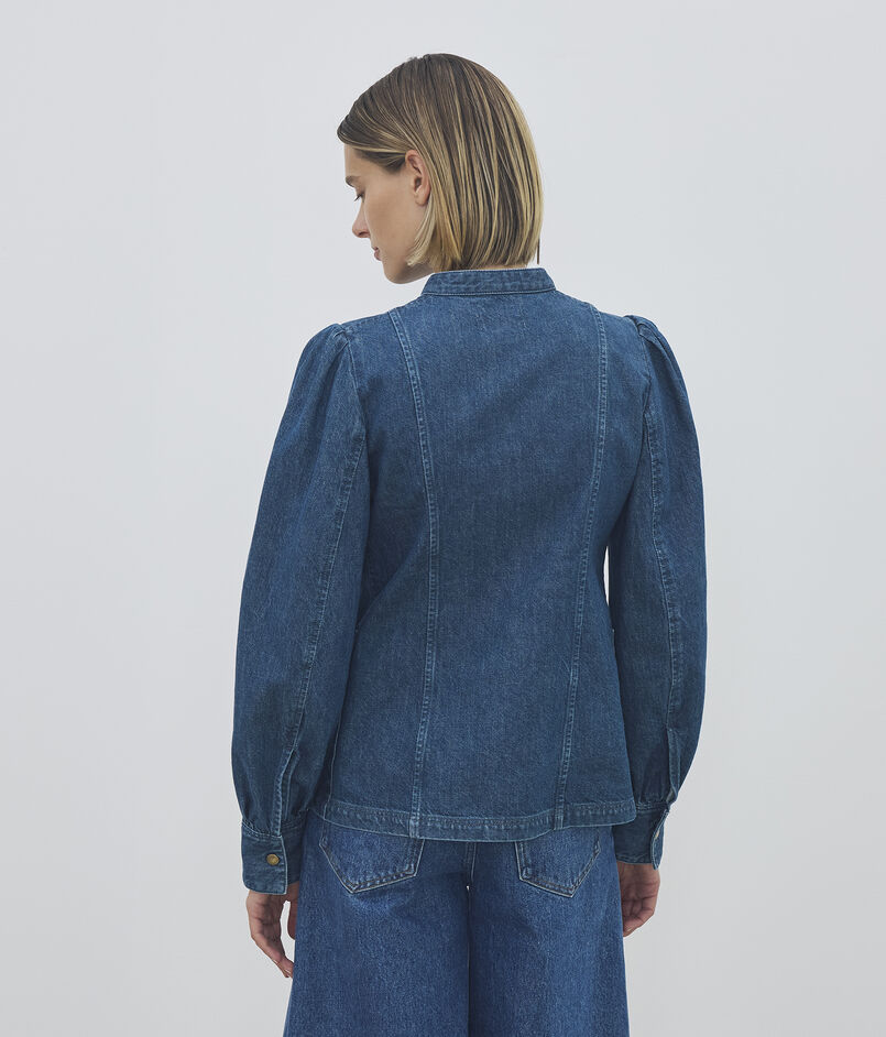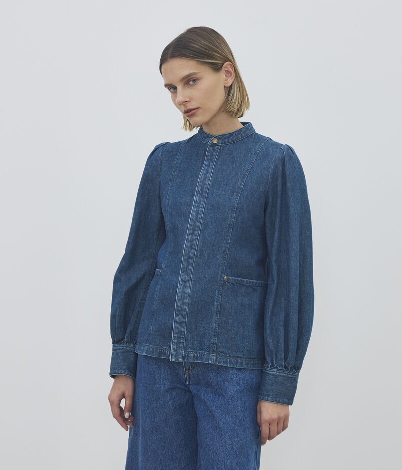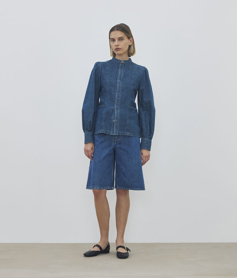 パフスリーブのフェミニンさとボディのすっきりとしたシルエットのコントラストで〈DES PRES〉らしいモードさのある一着。