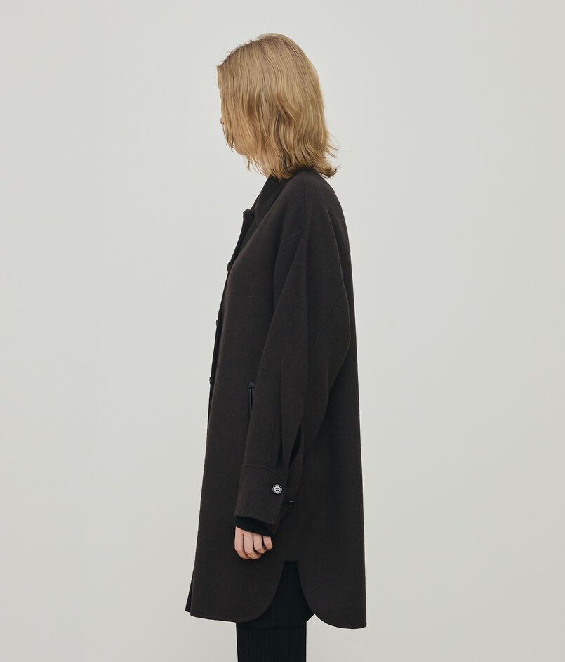 シャツライクなシルエットのコートは本格的に寒くなる前から軽く羽織れる一着。