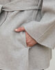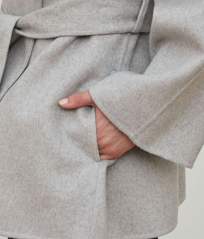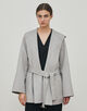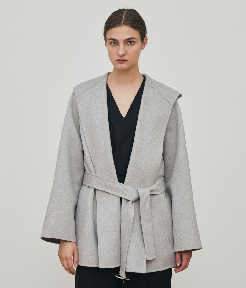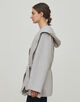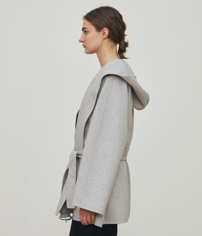フード付きのミディコートはウエストベルト付きで、程よくリラックス感のあるシルエット。
