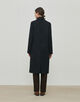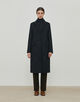 チェスターコートはすっきりとしたストレートシルエットで、マニッシュな雰囲気の一枚。