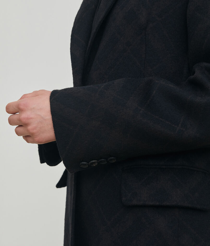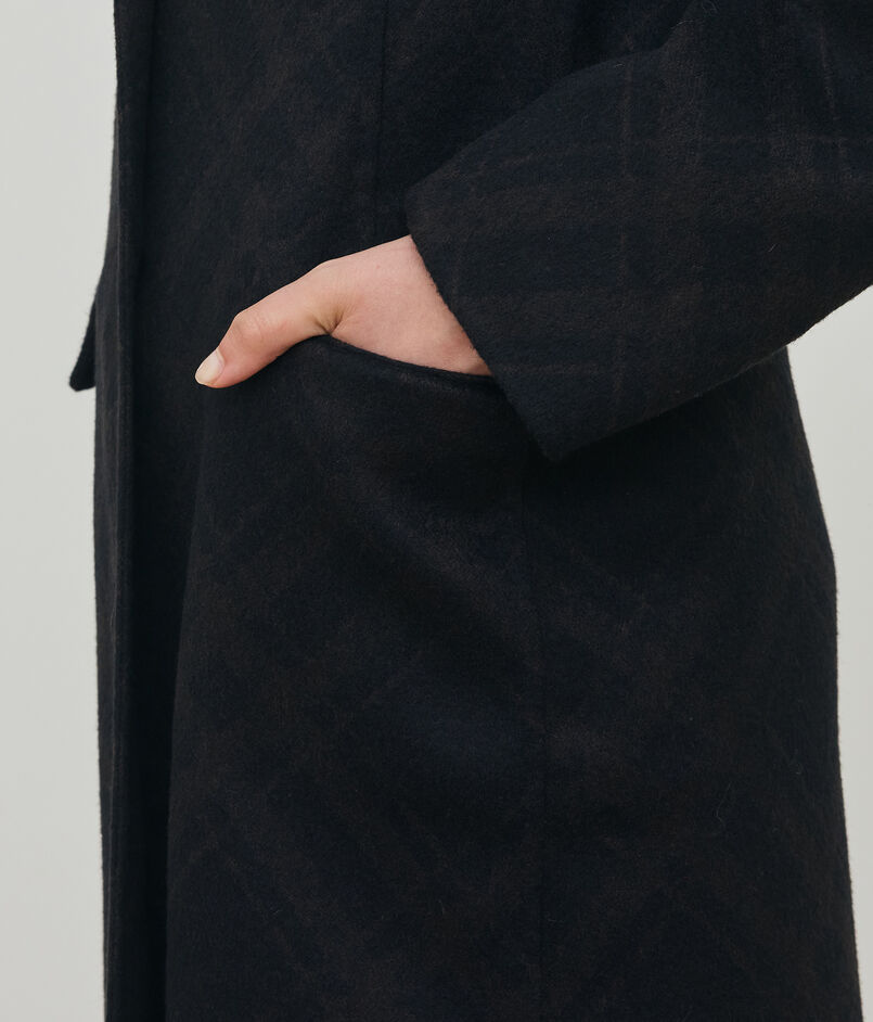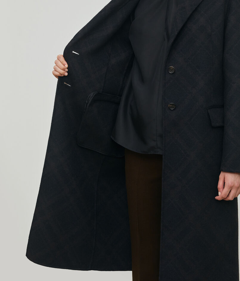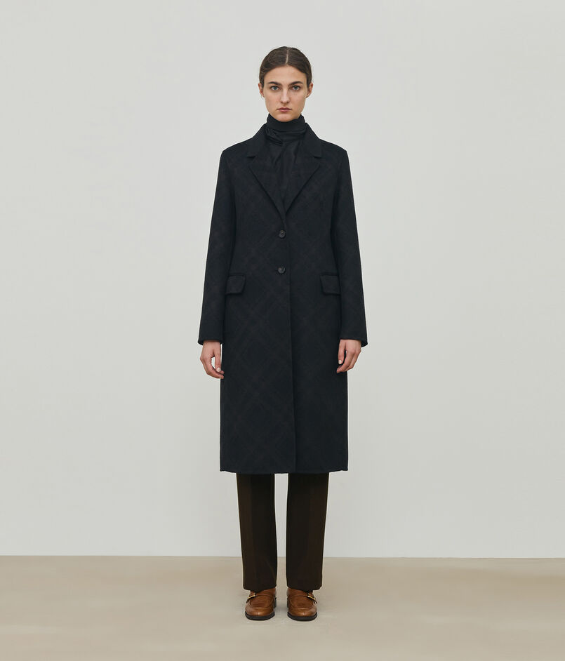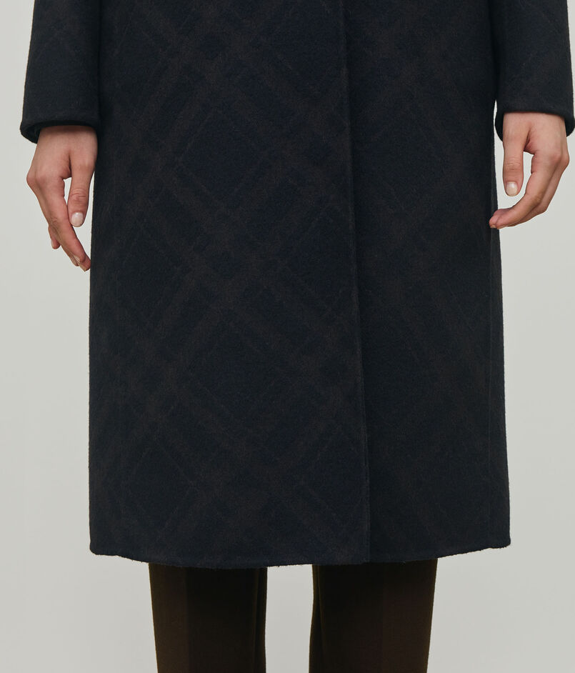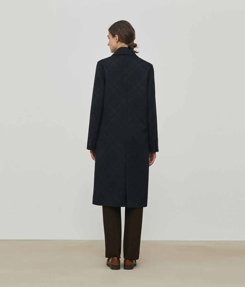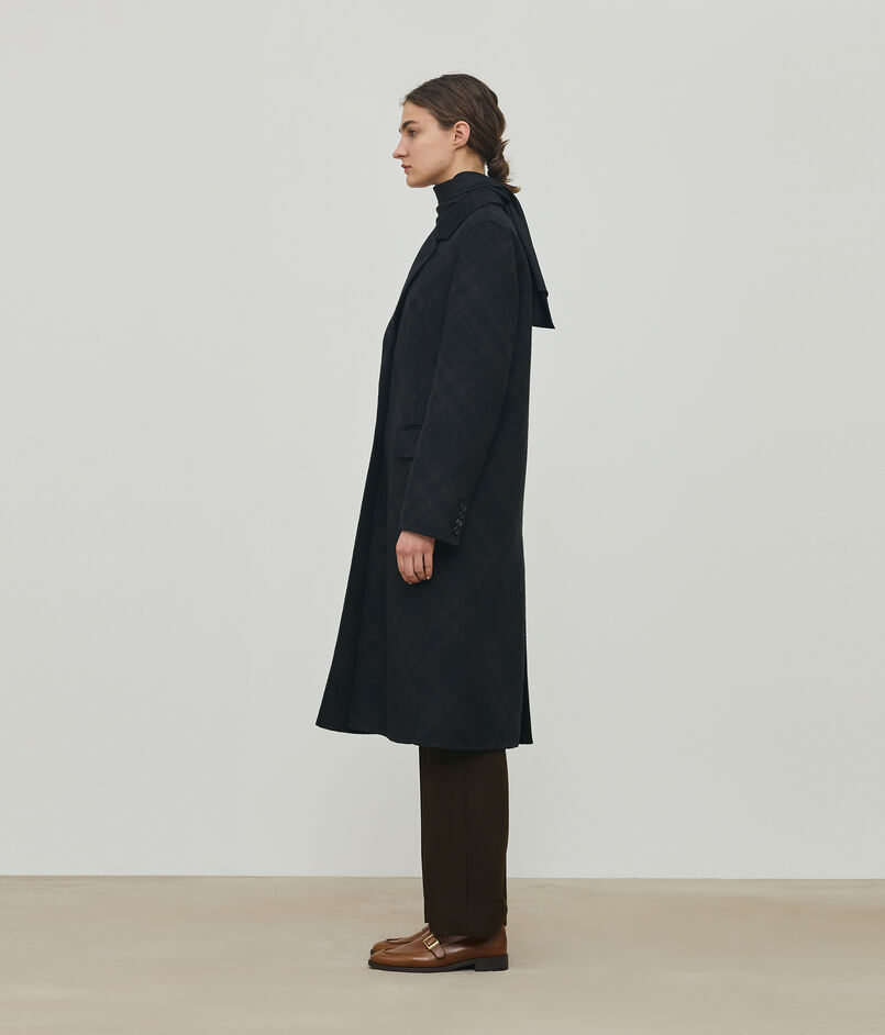 ダブルフェイスのウールメリノ素材にバイヤスチェック柄を施したアウターシリーズ。