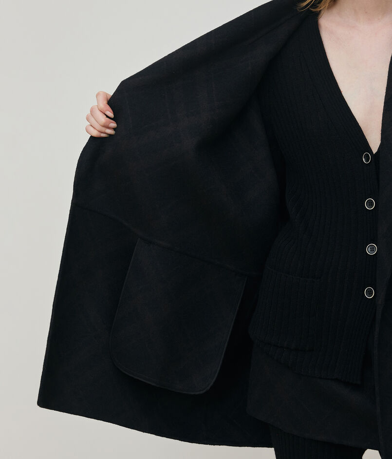大胆なドロップショルダーとゆったりとしたシルエットで、さらりと羽織るだけで抜け感のある着こなしが決まります。
