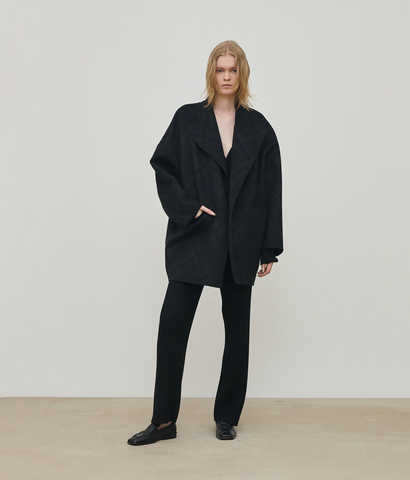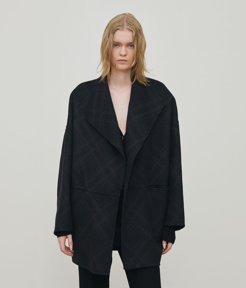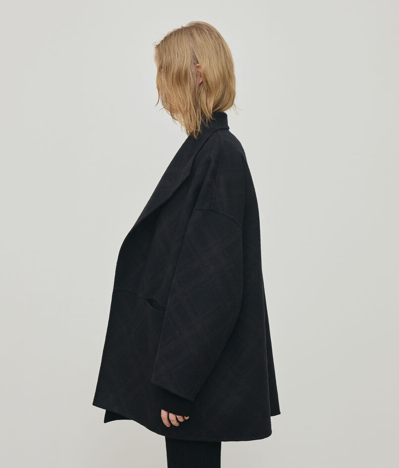 【WEB先行予約】ダブルフェイスチェックジャガード ウィングカラーコート