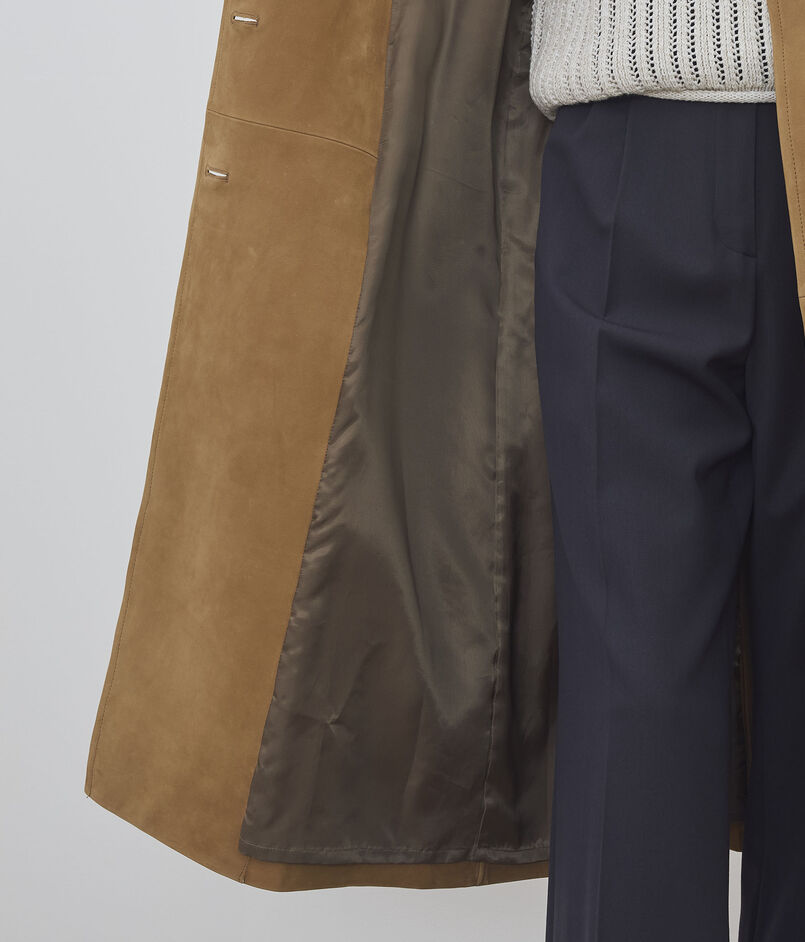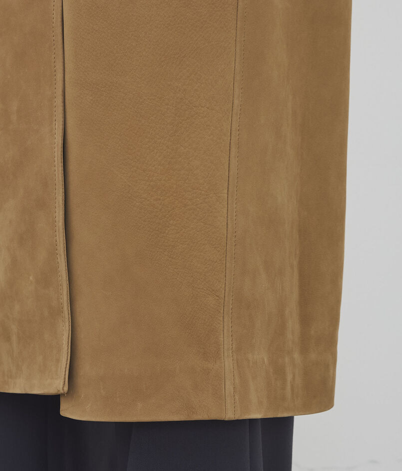 パキスタン原皮を使用し、パキスタンで鞣し仕上げを行なったヌバック素材を使用したコート。