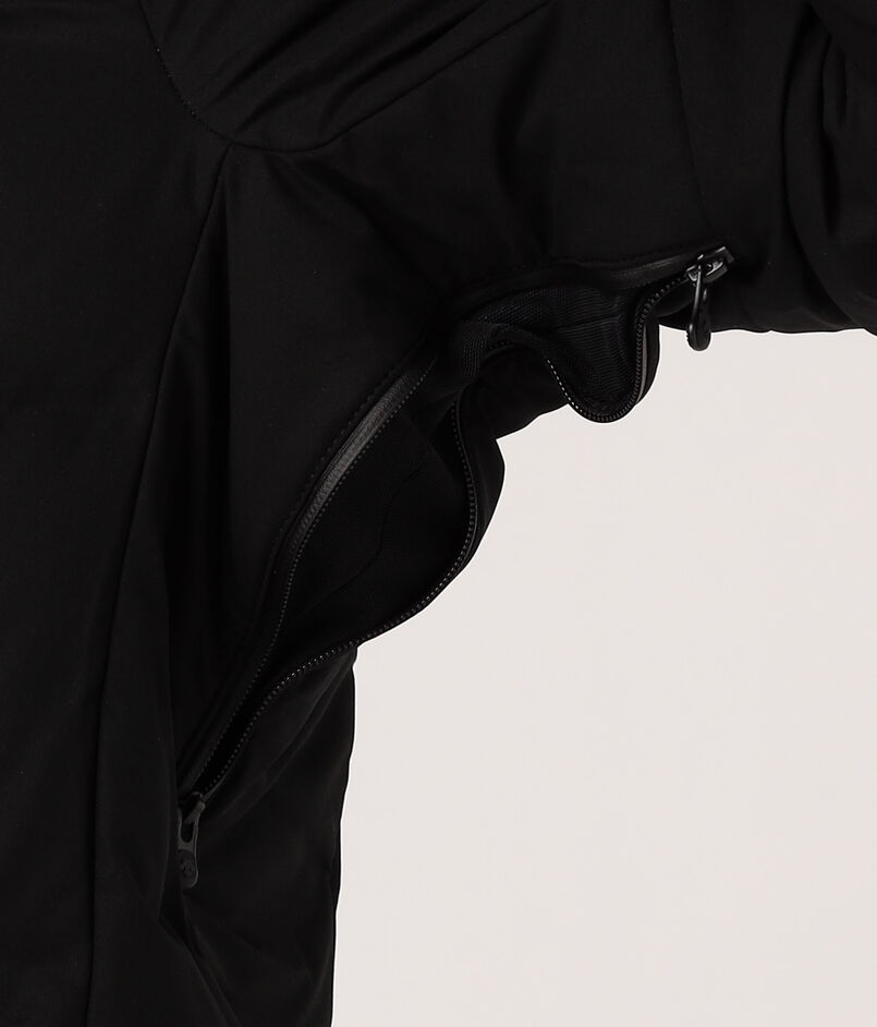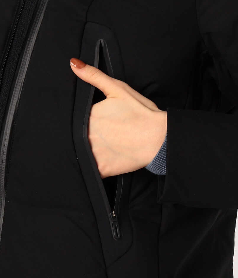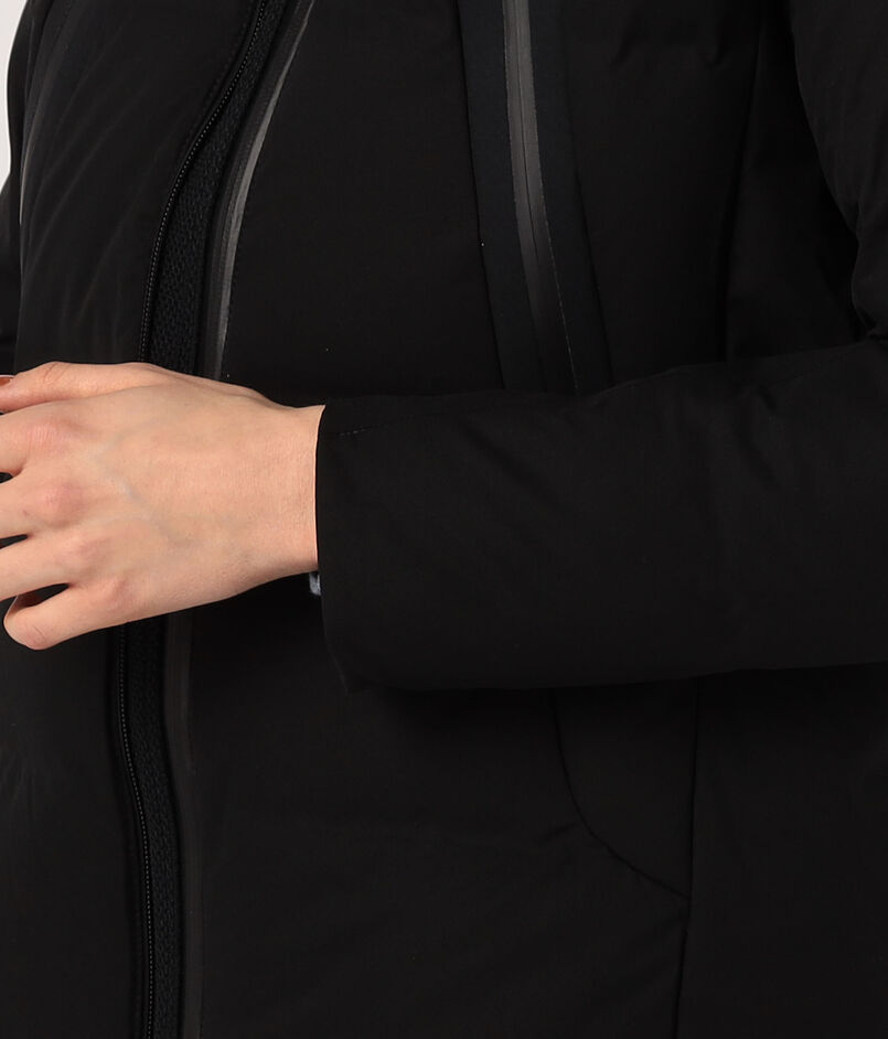 熱接着ノンキルト加工とシームテープ加工による高い耐水性や、肌さわりの良い袖口や内襟の仕様など、快適で利便性の高いディティールがポイントです。
