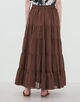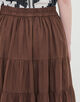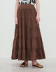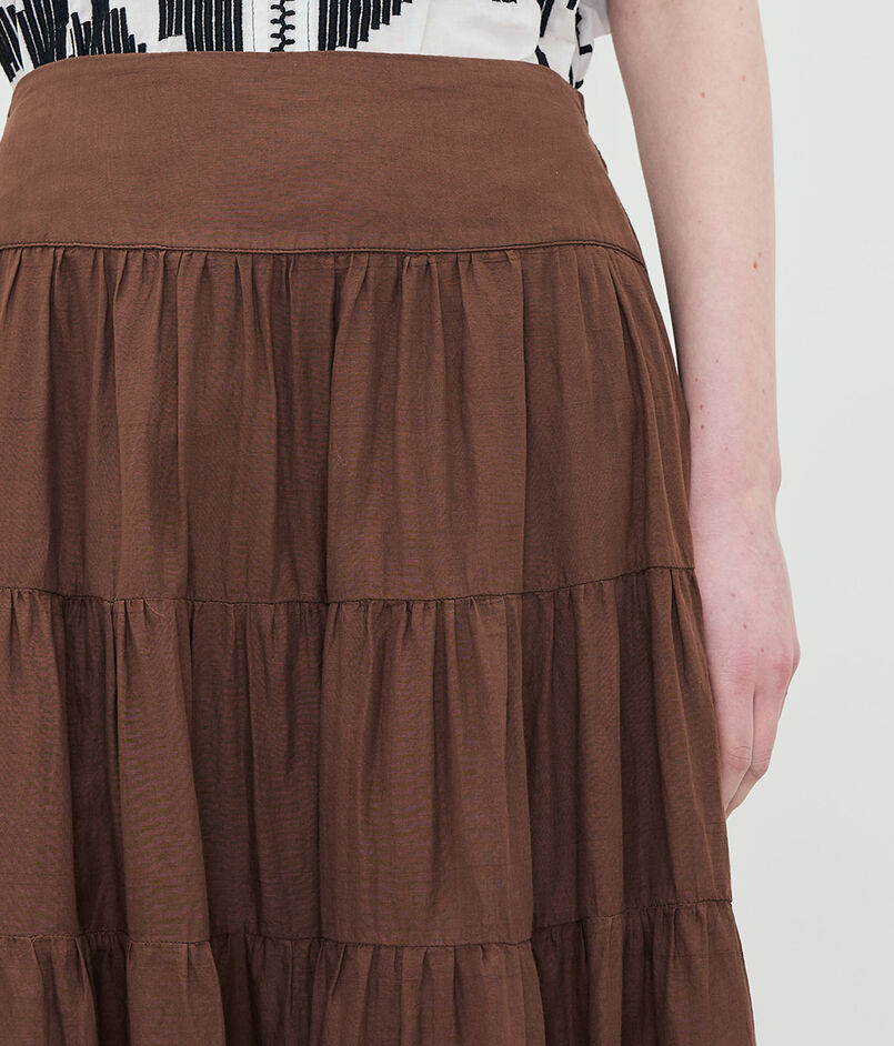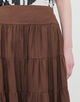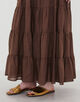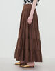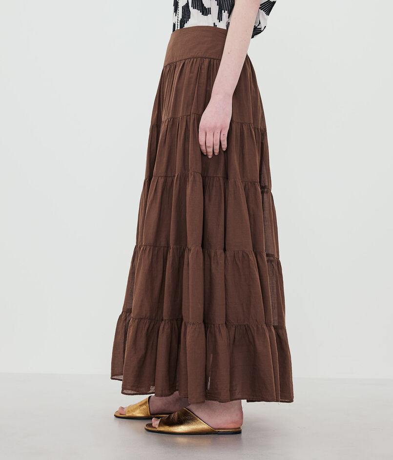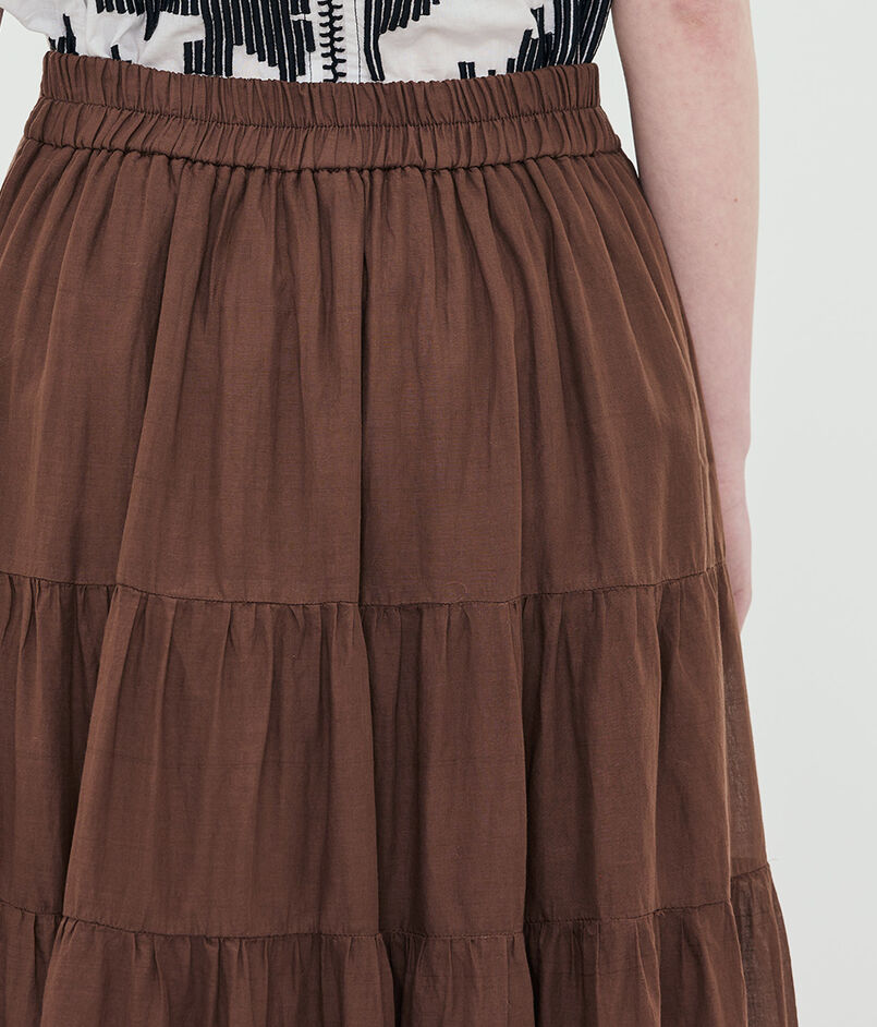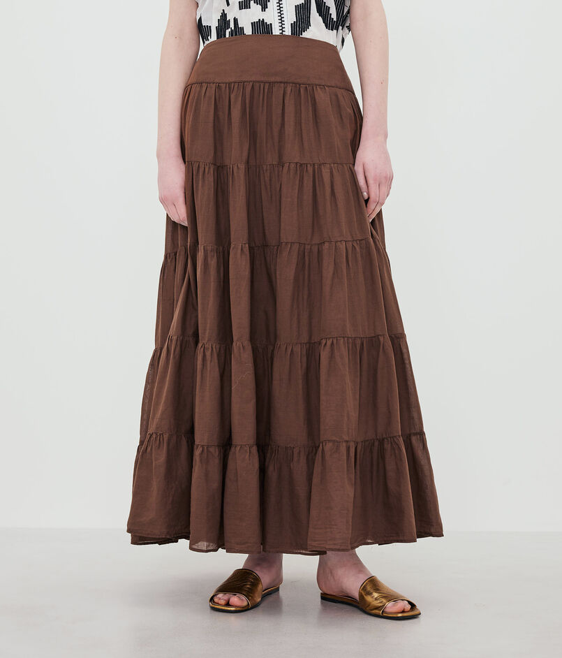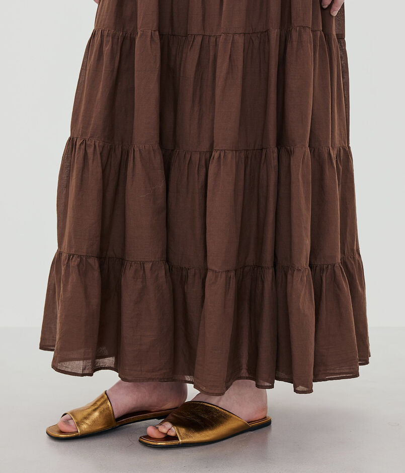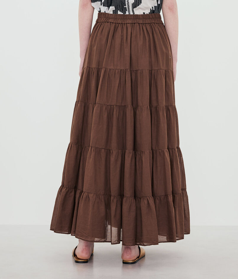 幾重にもギャザーを寄せたティアードデザインが柔らかなボリュームと優雅な動きを生み出します。