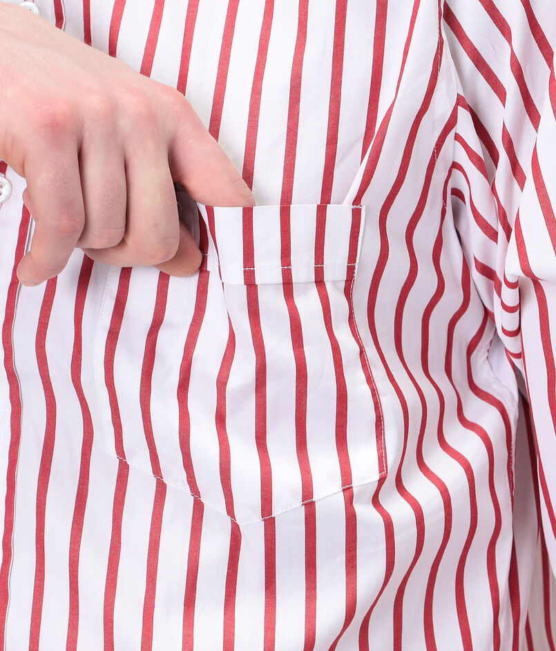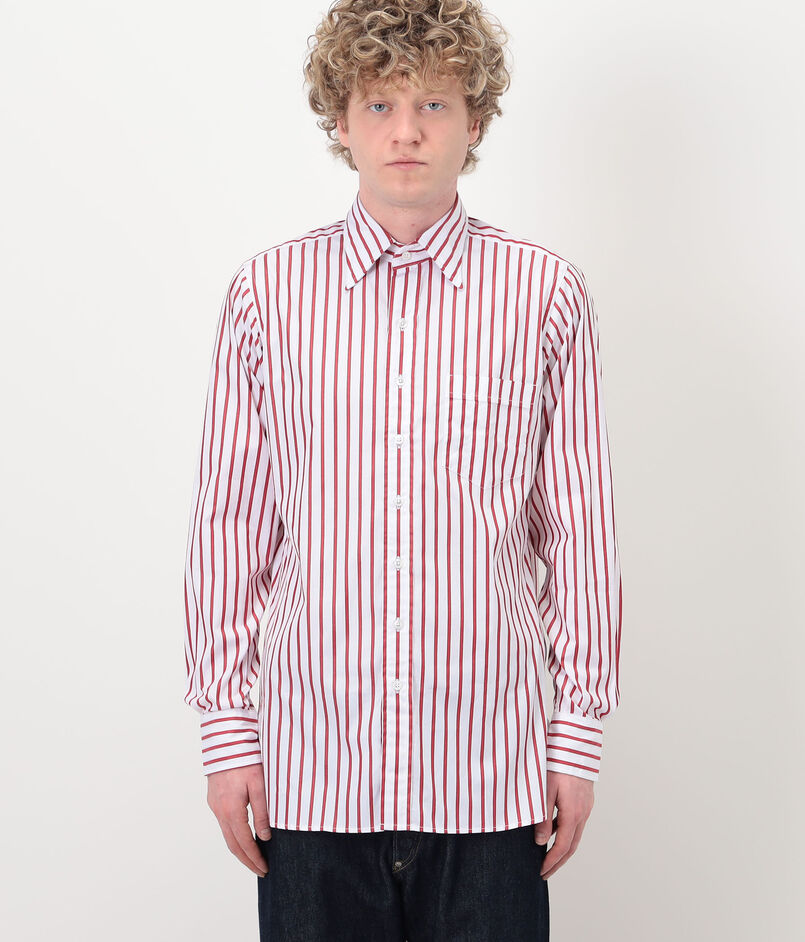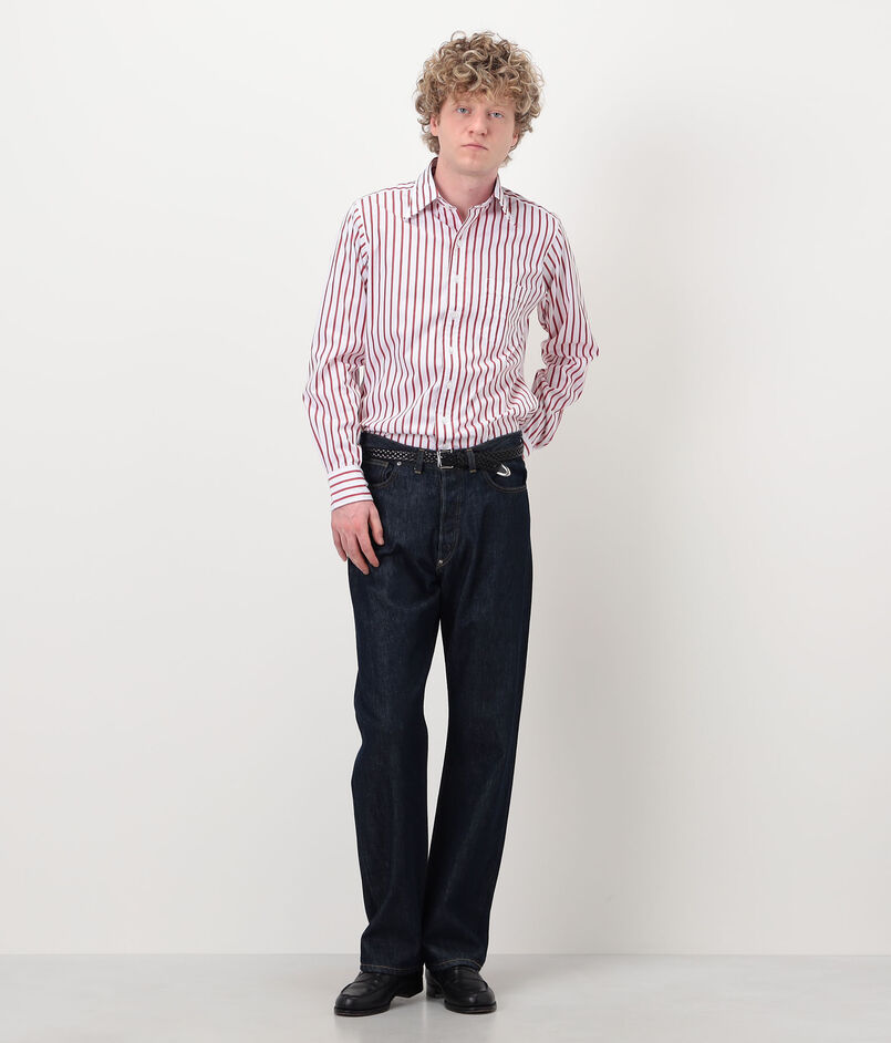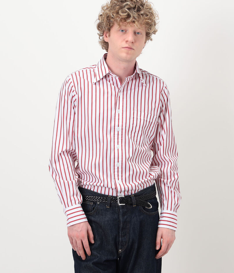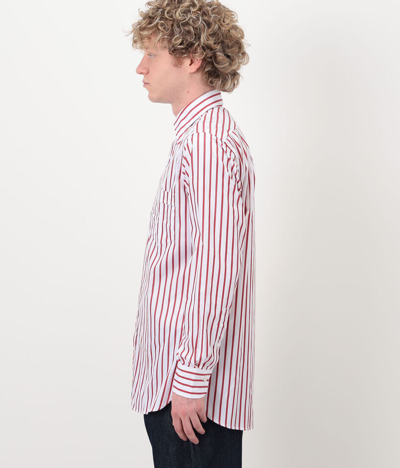 Drake’s コットンポプリン ストライプ ロングポイントシャツ
